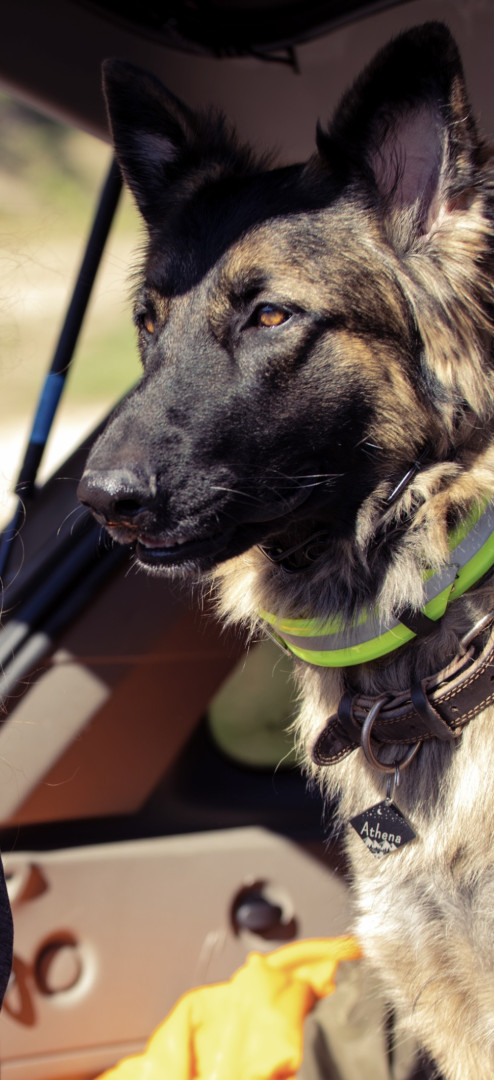 Athena is a certified search and rescue scent-specific trailing k9. She works hard to find missing people to bring them home to their family