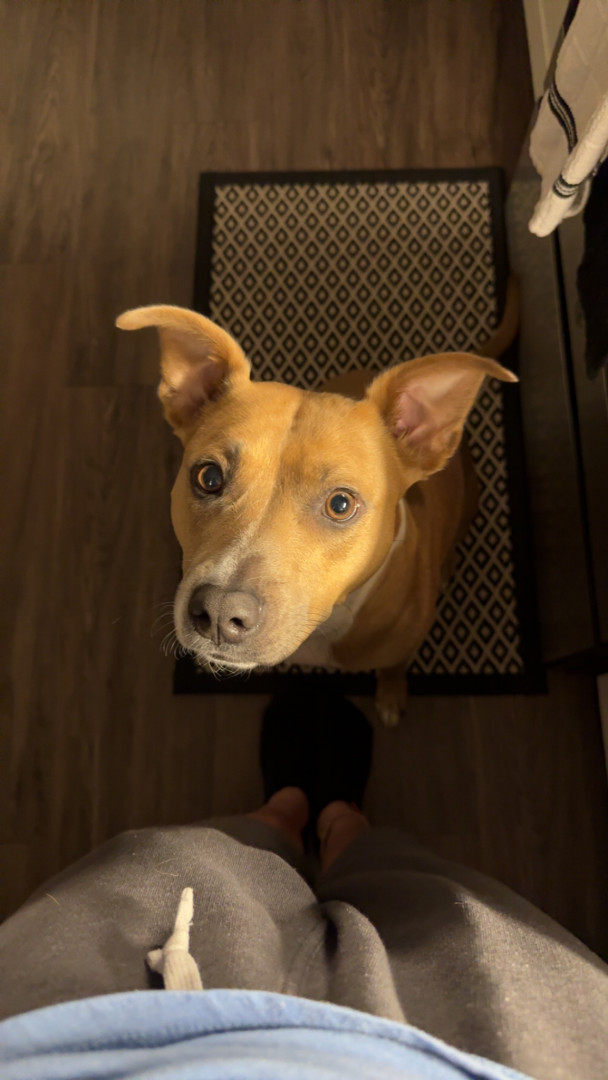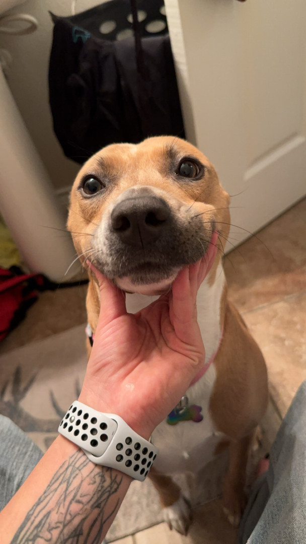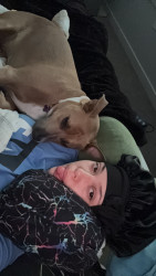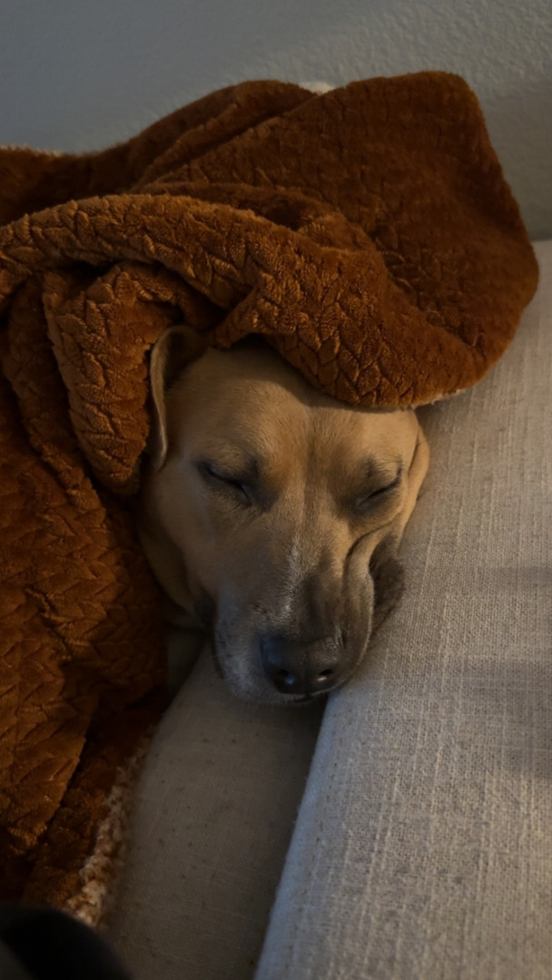 we saved each other quite literally. shes just a baby, lives to play fetch and loves cuddling under a 1000 blankets. shes my best friend