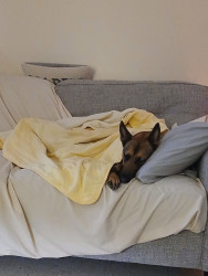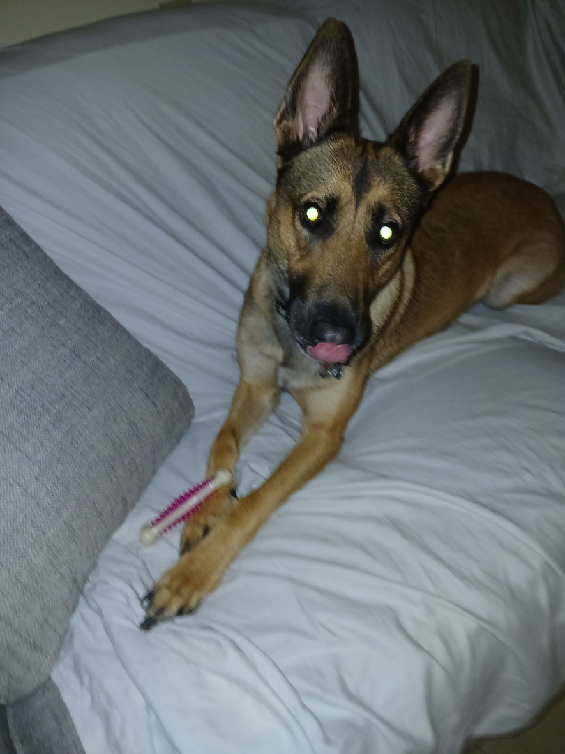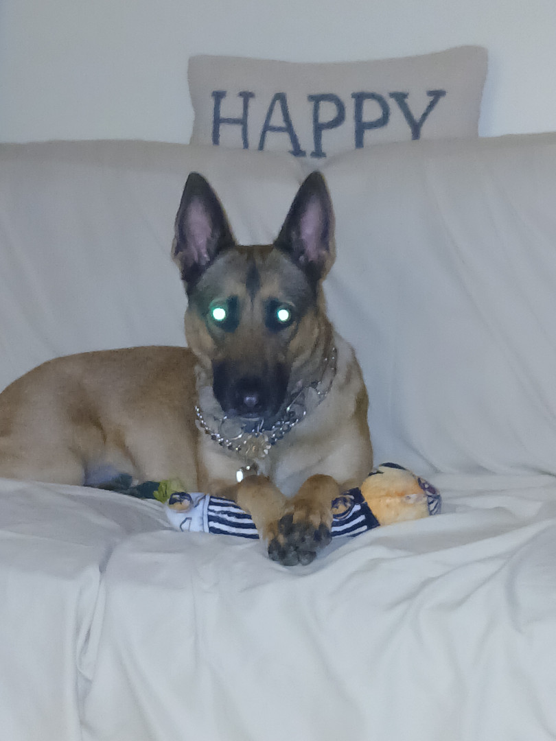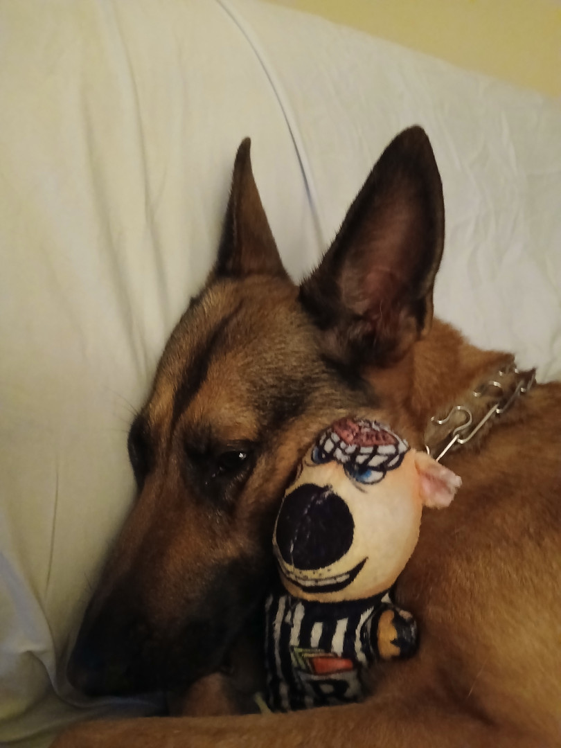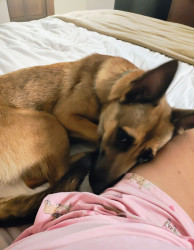 Athena should be America's favorite because you couldn't ask for a better best friend. Athena is very affectionate and playful but when it comes to her role of protector and service dog she takes it very seriously.