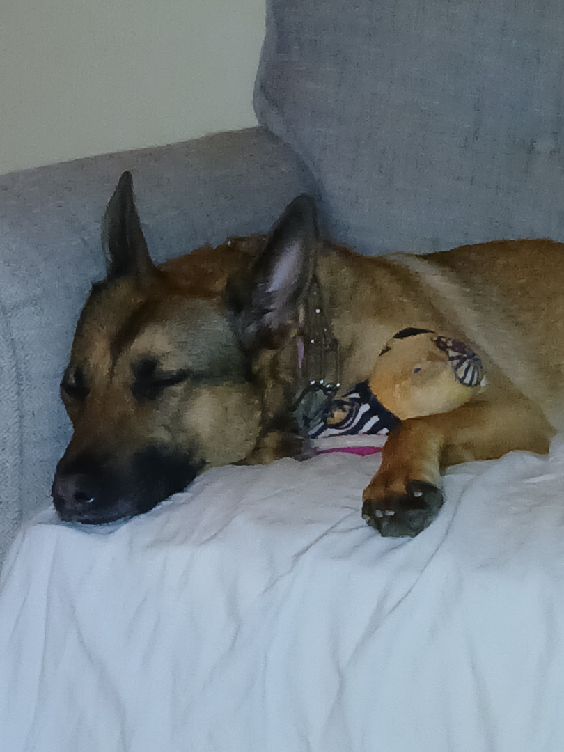 Very loving towards mama and daddy but always aware of her surroundings and on point to protect.