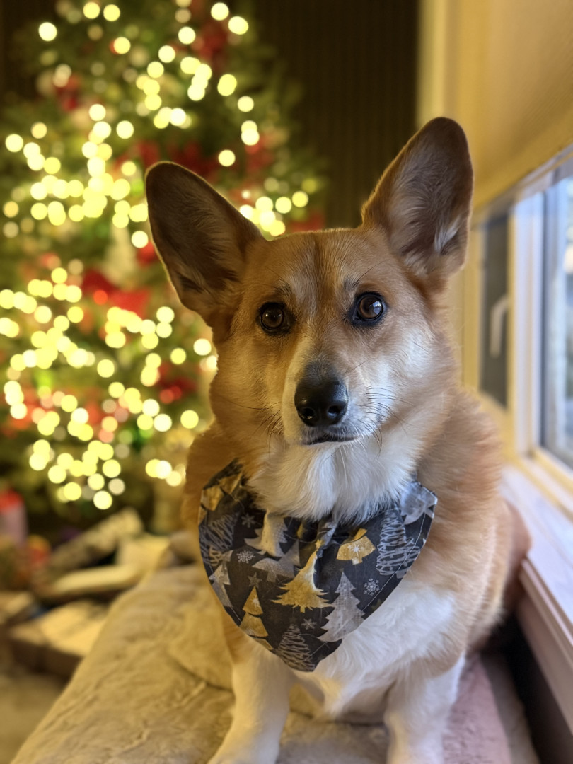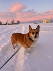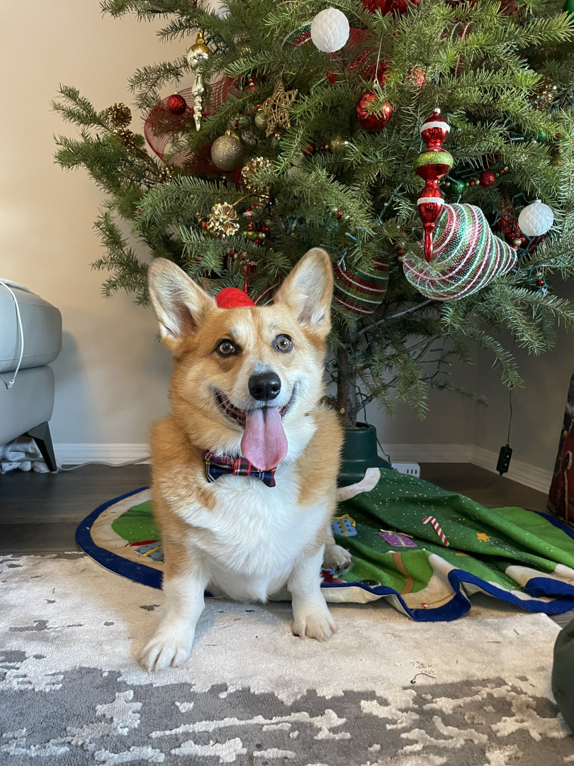 Auggie is a typical corgi! Big dog in a small body. He loves to boss his “brother”. He is the heart of our family.
