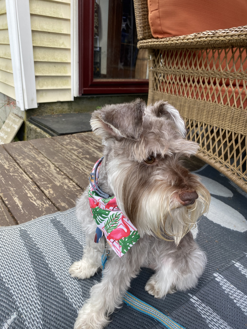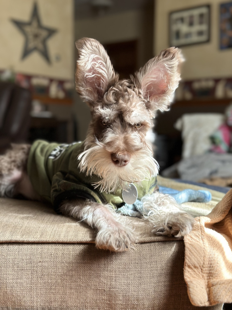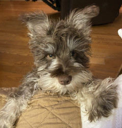 Austin, is a 3 yr old mini schnauzer with his own personality. loves to cuddle. We love him dearly.
