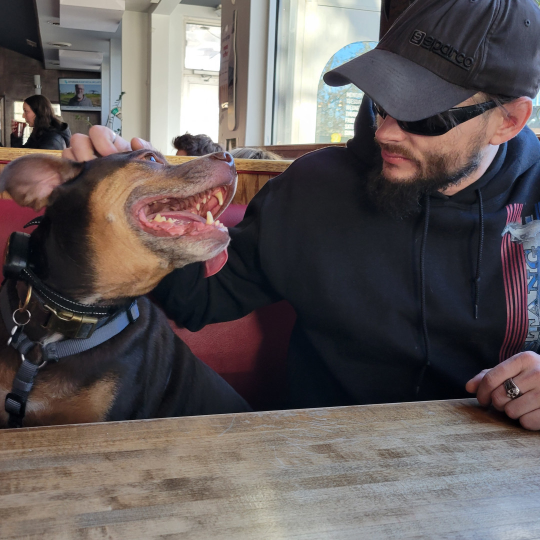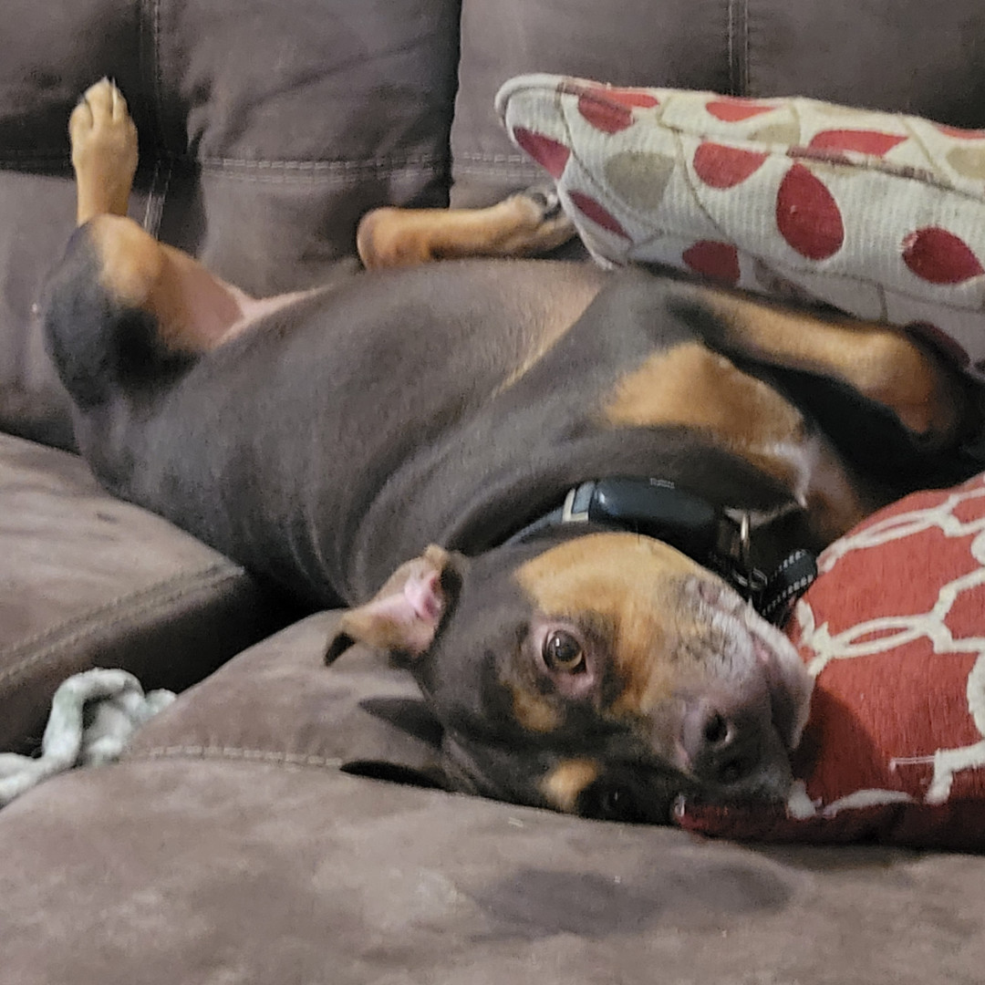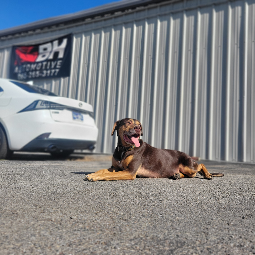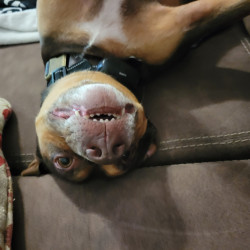 Auto is a pitty thats scared of his own shadow. He loves playing fetch, going on car rides and hanging with daddy at the shop all day!