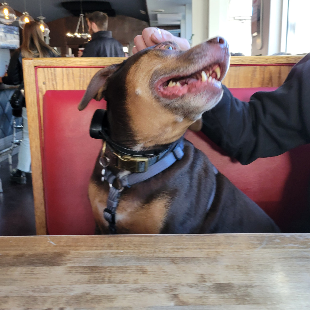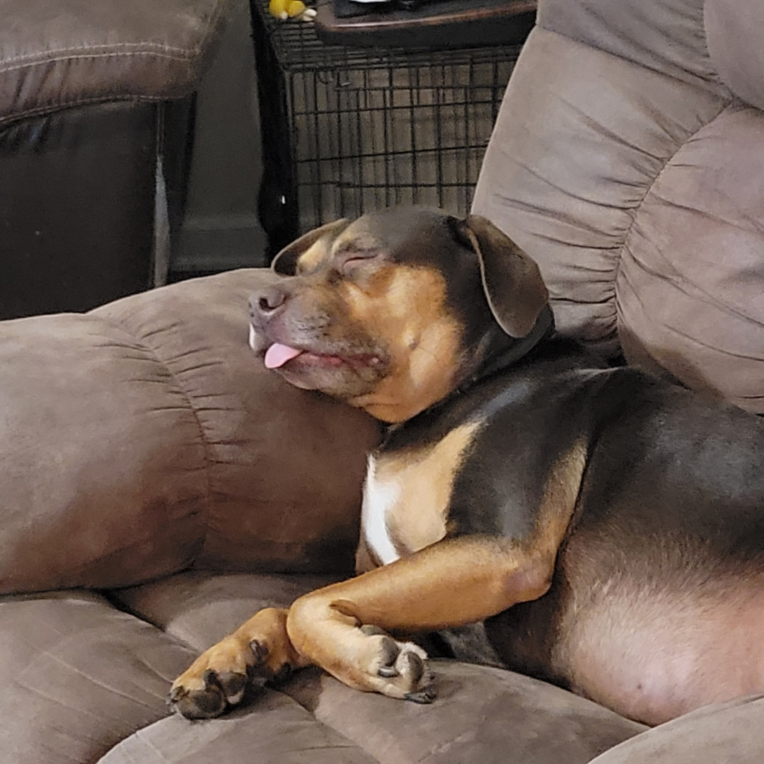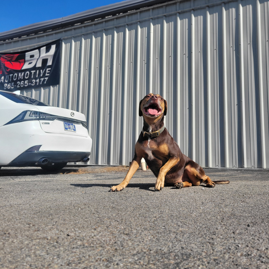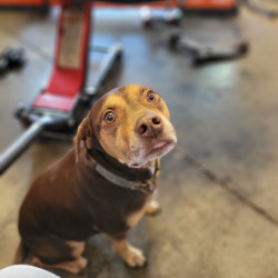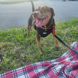 Auto is a pitty thats scared of his own shadow. He loves playing fetch, going on car rides and hanging with daddy at the shop all day!
