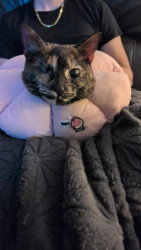 I think Autumns such a classic story. My mom & I were on a hike when this sweet cat comes right up the us rolling on the ground. She was missing an eye. Her tail is broken in multiple places. Her hips have injuries. She was starving. We took her home got her eye fixed and the other injuries healed. She's been spoiled ever since. She loves everyone that comes over. Aways trying to sit on laps of everyone to get pet. She's adorable.