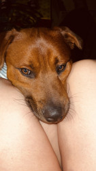 He is a sweet loving dog, that has chow pit and lab in him. He loves attention.