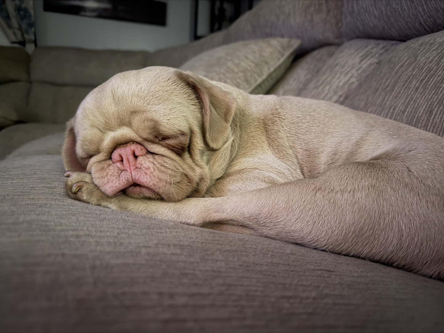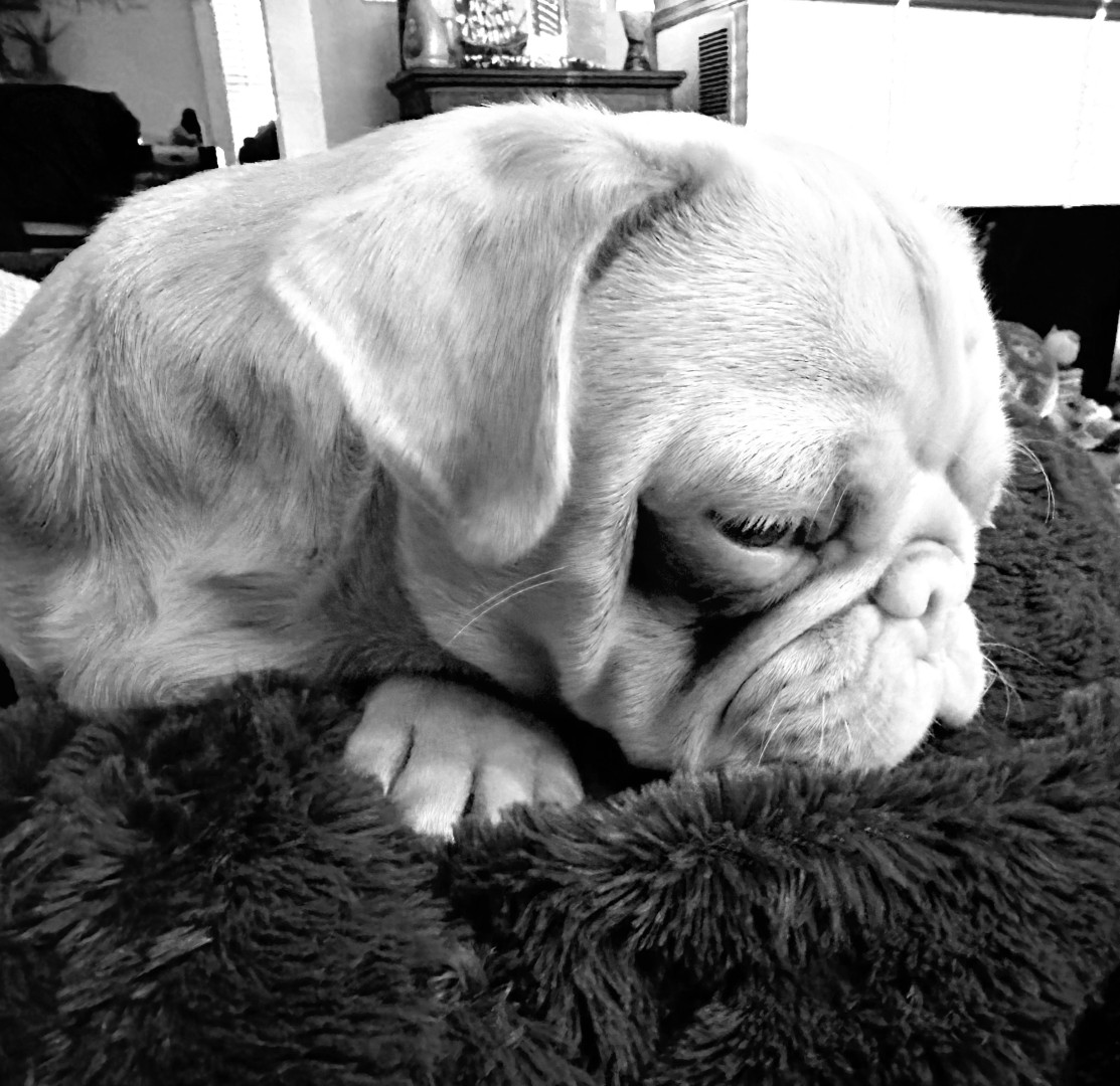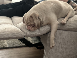 He is pink! But he’s also just the most affectionate dog and has the best personality!