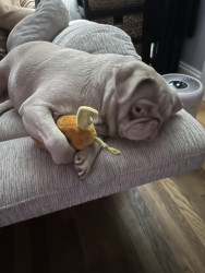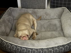 Axl came to my family three years ago as a rescue who was used for breeding due to his unique coloring. You would never know this little man has been through so much because he’s just amazing and is honestly my soul pug!