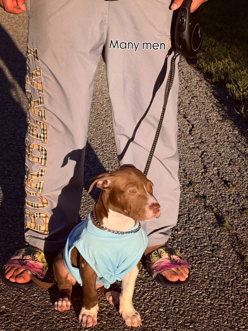 He is an American pitbull staffy mix. He is a energetic little boy. Well trained to pee poop