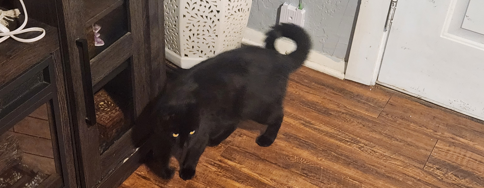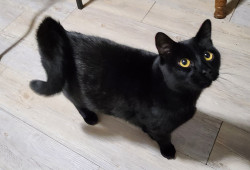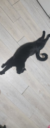 He is polydactyl, with short legs. He also has a permanent curly tail.