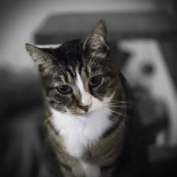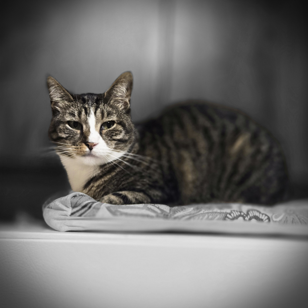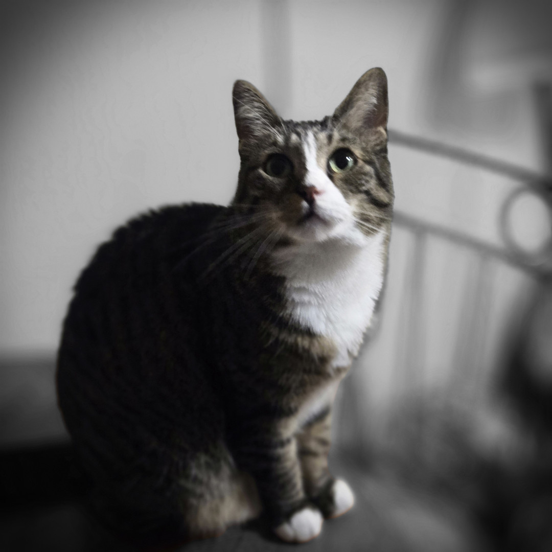 She was a gift from the cat distribution center she is a sweetheart and my companion she is living her best life in her forever home.