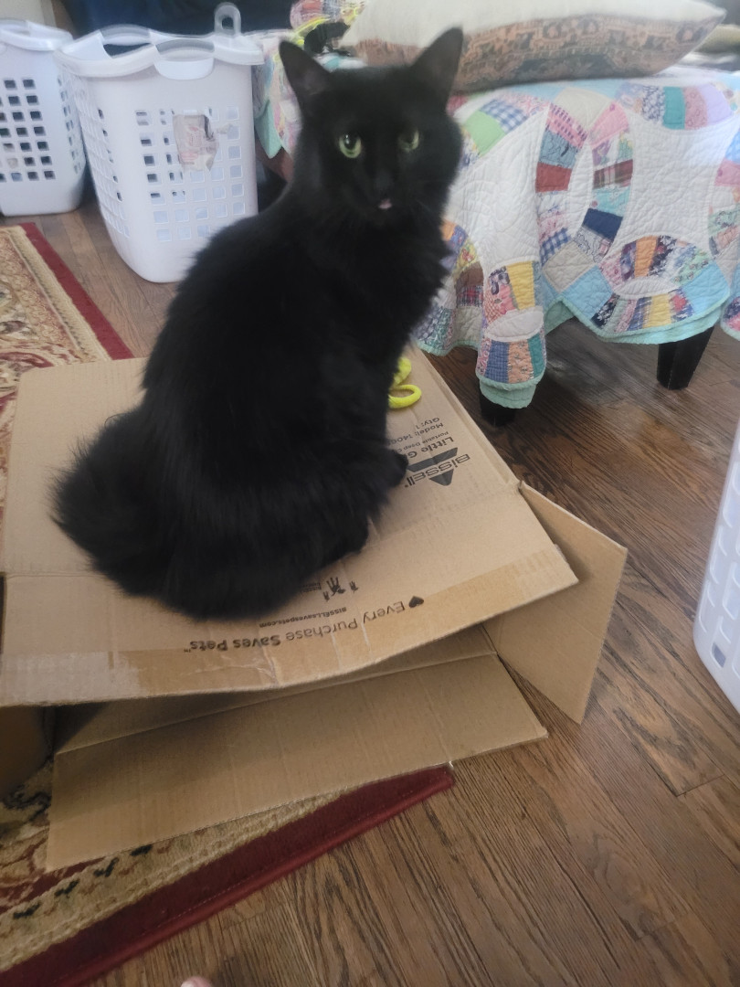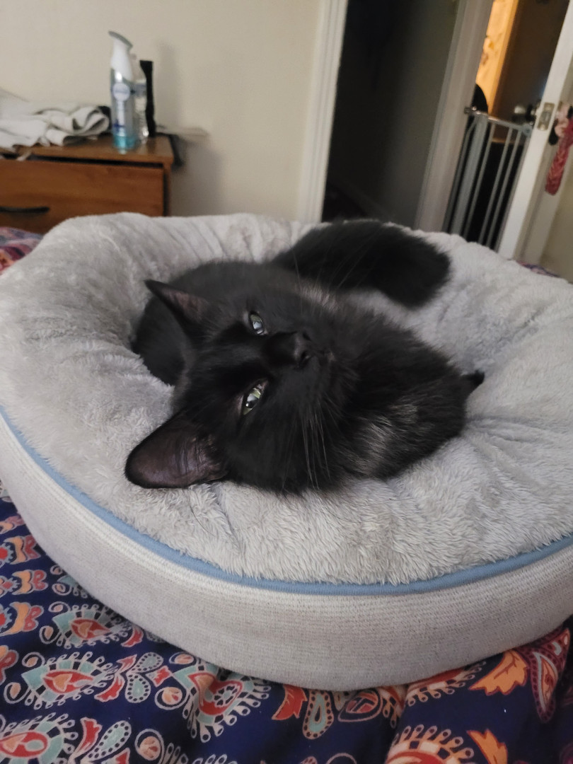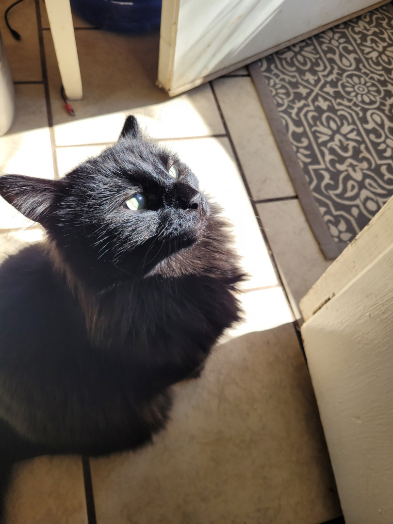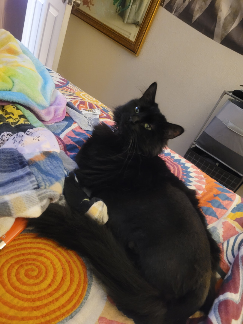 She is a beautiful cat, she's incredibly entertaining, and she is very resilient. She had her back leg amputated two months ago, and she keeps truckin! We have a 170lb Great Dane, and he listens when she tells him to get in line.