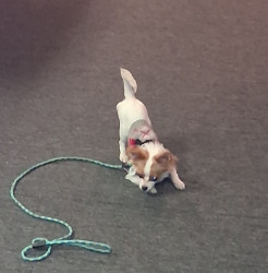 Receive Text UpdatesShe has a lazer pointer that she LOVES. It has multiple settings, we can make a smiley face/butterfly/star/mouse and just a dot. She has many favorite toys, including her ball, her stuffies and loves to shred paper towels. Her favorite treat is Good eats it is she loves them and will chew on it for hours