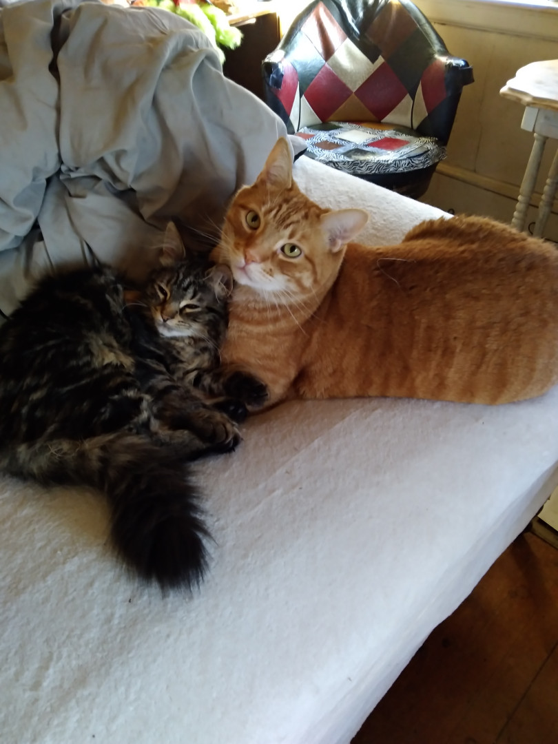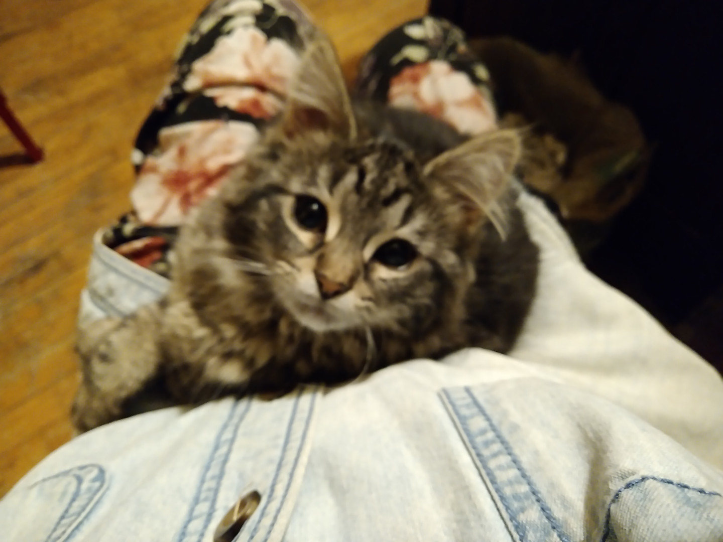 The baby is my newest, she's over a year old but only weighs 6lbs. She plays fetch, this morning she caught a mouse and dropped on my fo