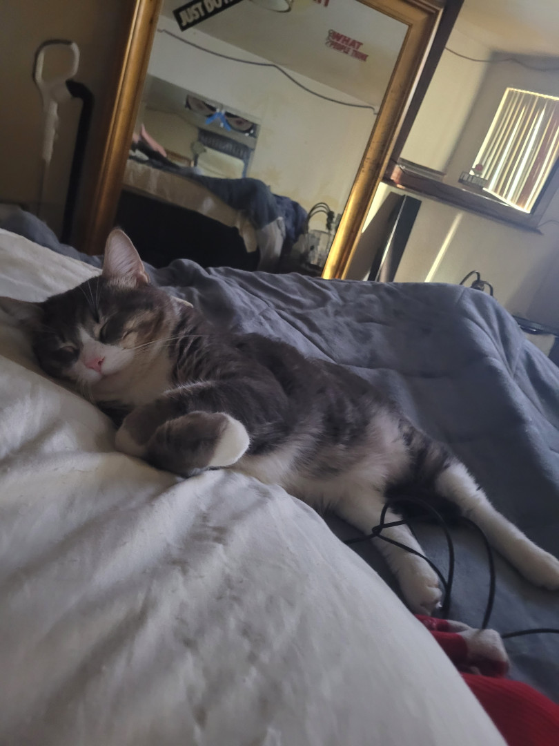 He is the coolest cat ever. He will lounge with u all day, and most of the time he will be sitting and waiting at restroom door for you on bathroom breaks. If I don't say something to him while I'm walking upstairs to my room he will just paw smack at you like hey I'm here. I love this guy he's a 1 of a kind for sure