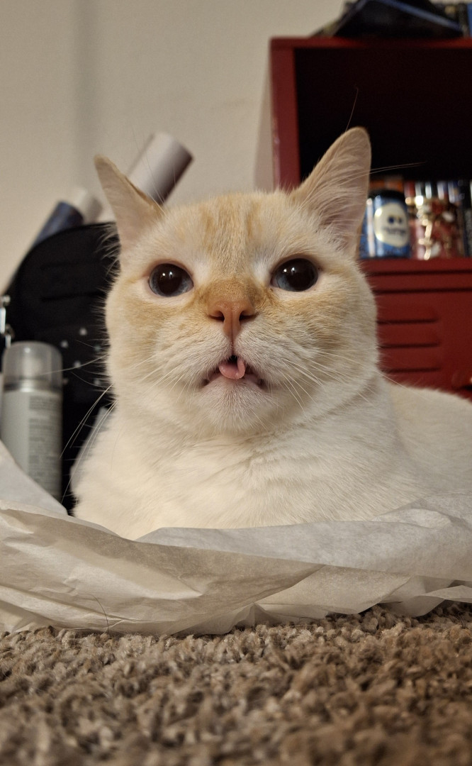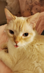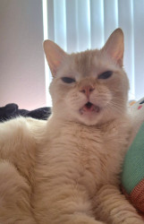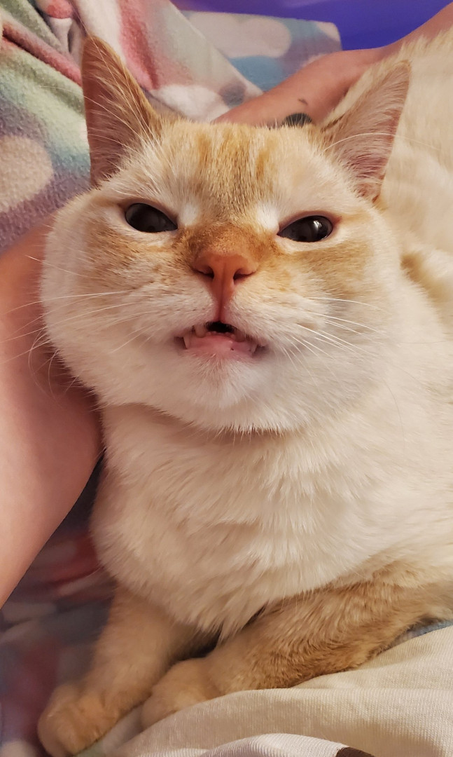 His most unique quality is his joy and how he shows it! He loves to have his little tongue out or mouth open, full of purrs to show all the happiness and love he is always feeling.