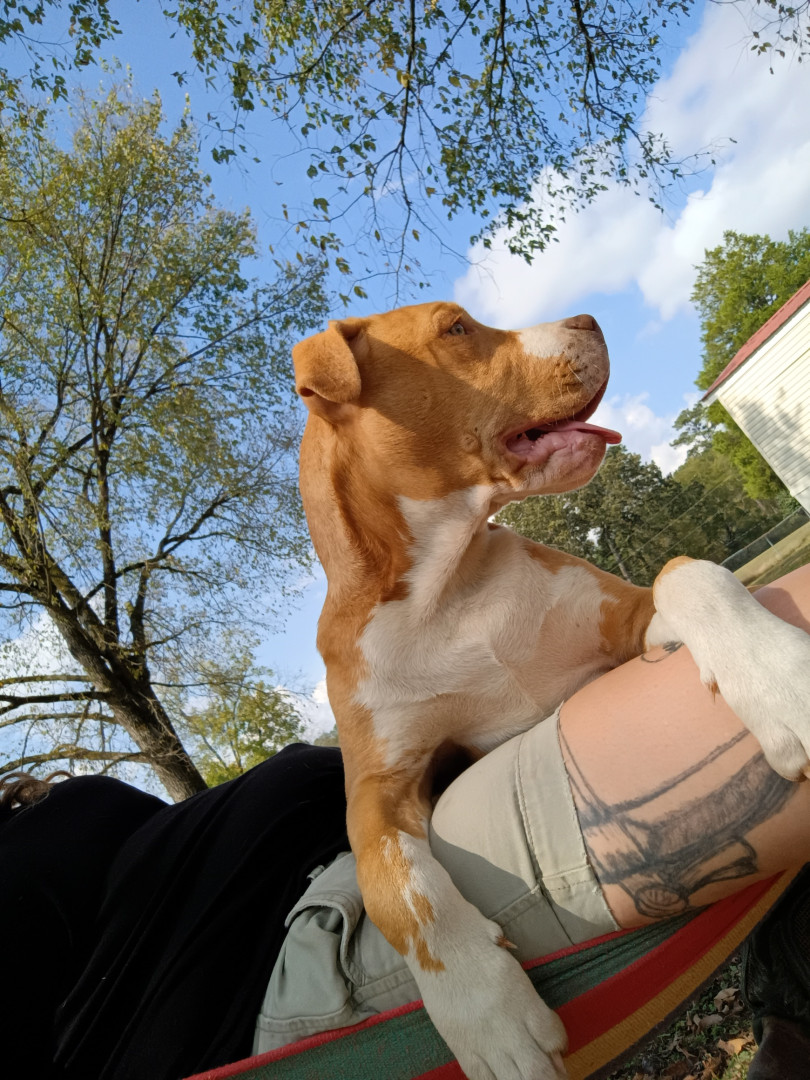 BabyDog loves to go for rides, goin to the creek, and loves swinging in the hammock with his mama.