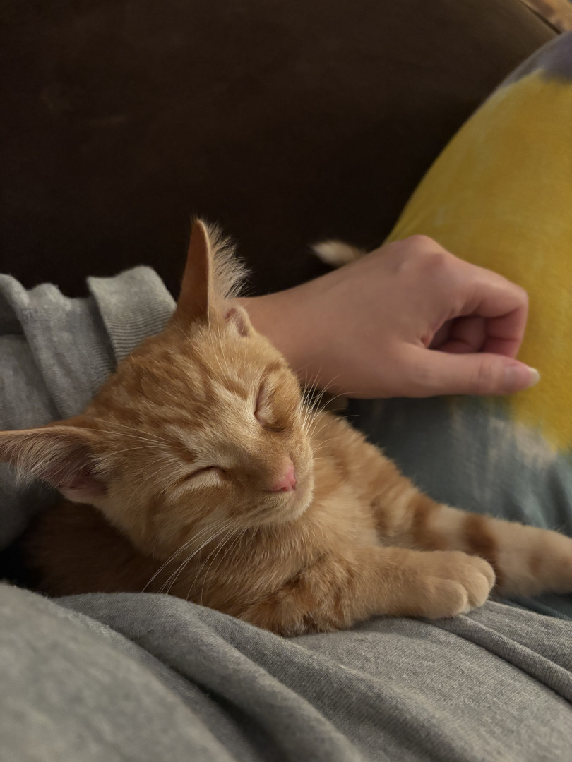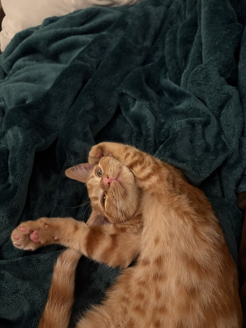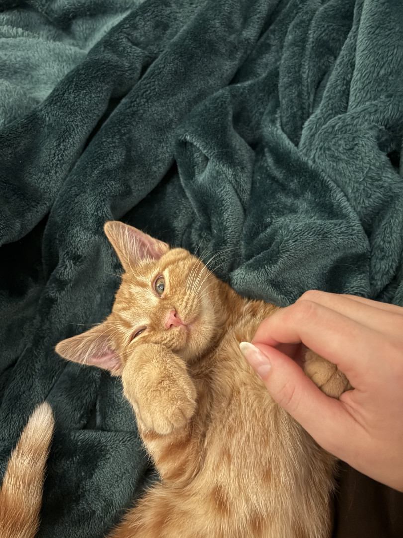 Bacon is the sweetest most cuddly boy. He loves his green blanket and comfy time with his family