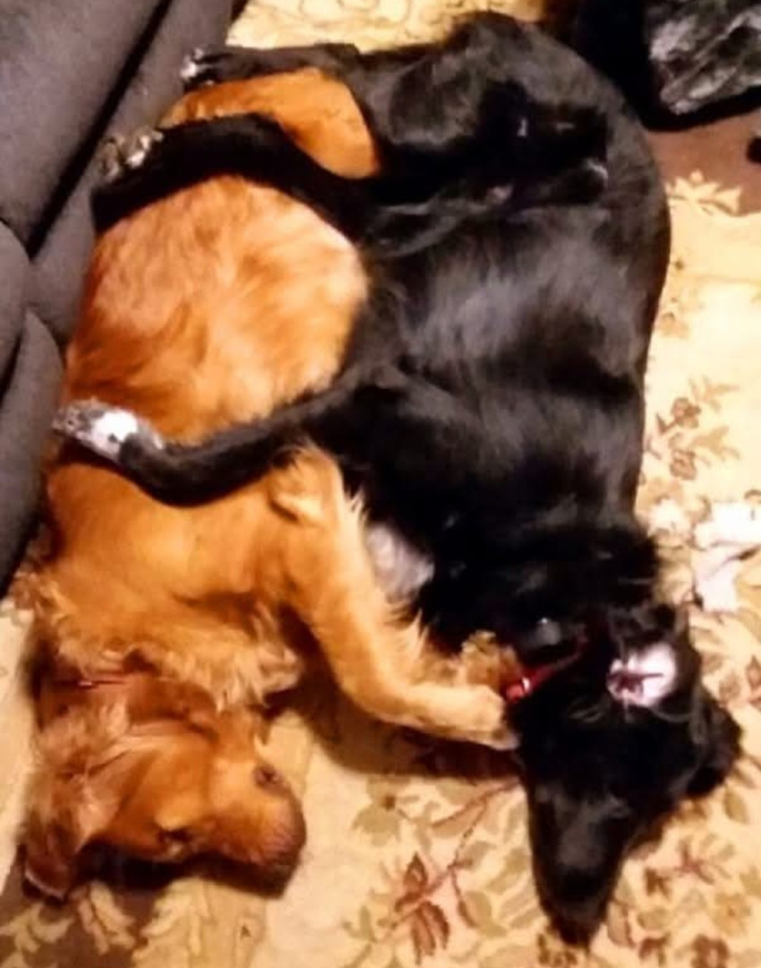 Bailey is a Golden Retriever/Collie Mix and Bella is a Purebred Golden Retriever. They've been attached at the hip since day one. Girls!