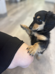 Bailey is a 10 week old mini long haired dachshund who is full of energy and loves his picture taken as you can see.