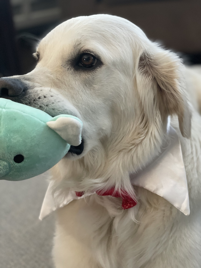 Receive Text UpdatesA stuffed rabbit that belonged to our last dog. She never leaves it alone.