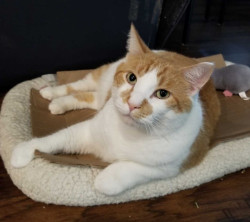 He was left in Pet Smarts glass cage for 9 months until we adopted him. He loves running down a long hallway chasing balls and quickly made himself at home. He is a very loving cat.