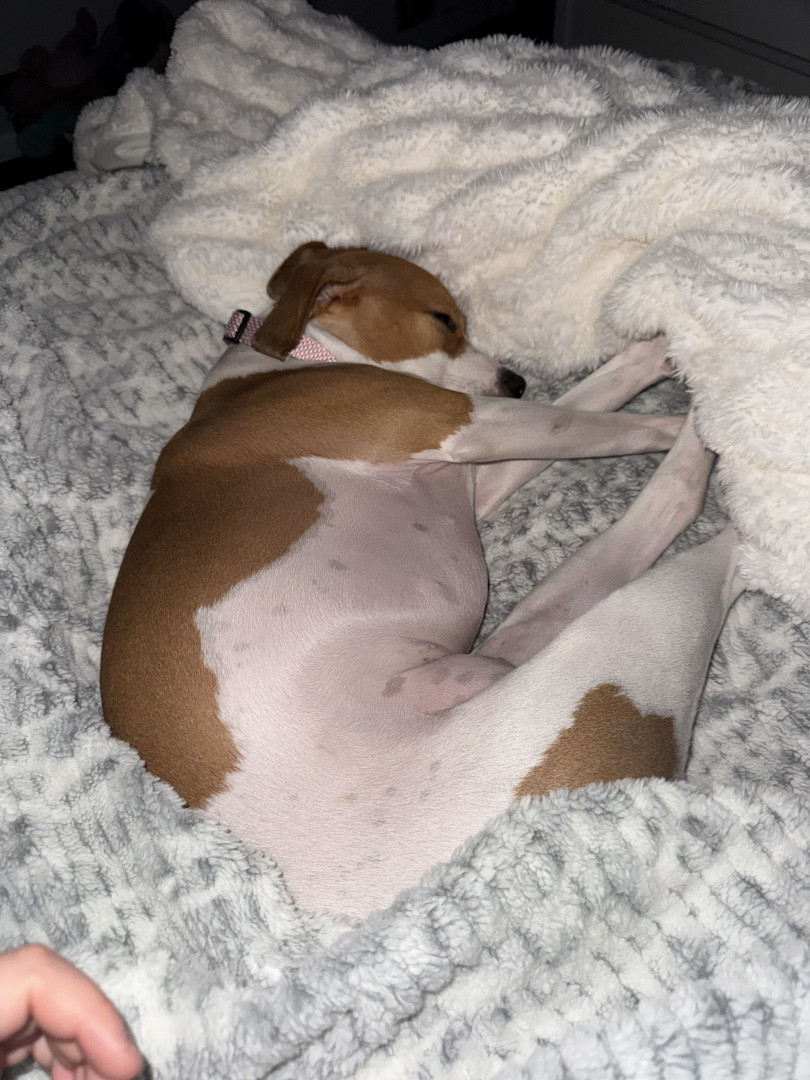 Baileys most unique quality is that when someone she loves gets home she will jump up on her two back paws and will dance her way to them and she will do that for at least 5 minutes when they get home. She’s also a great snuggle buddy and loves to sleep under the covers being fully covered. Another unique quality of Bailey is she will greet anyone she sees in the stores and she most likely always gets a toy so she will get a toy from the shelf and show them her toy and makes everyone laugh