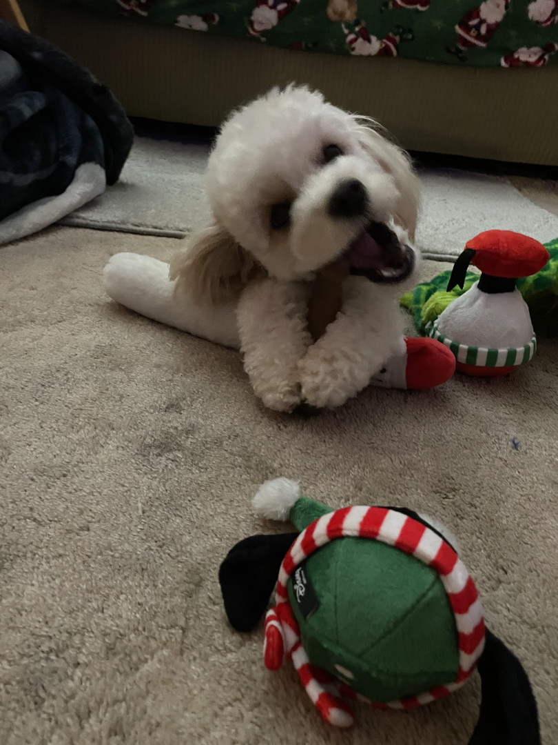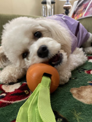 Learn MoreHer favorite toy is her Mickey Mouse squeaky/ crinkle flatties toy - Santa Paws is bringing her 3 more! She loves to catch and play ball and frisbees. Her go to treat is baby carrots - LOVES them !! Bailey also loves her grilled bison fruitables skinny minis treats, and chewing on her Himalayan yak chews.