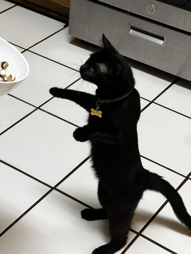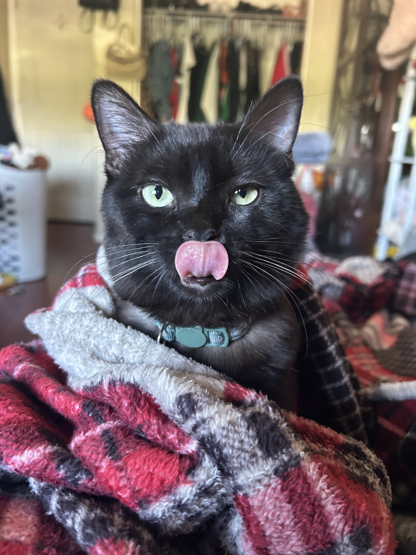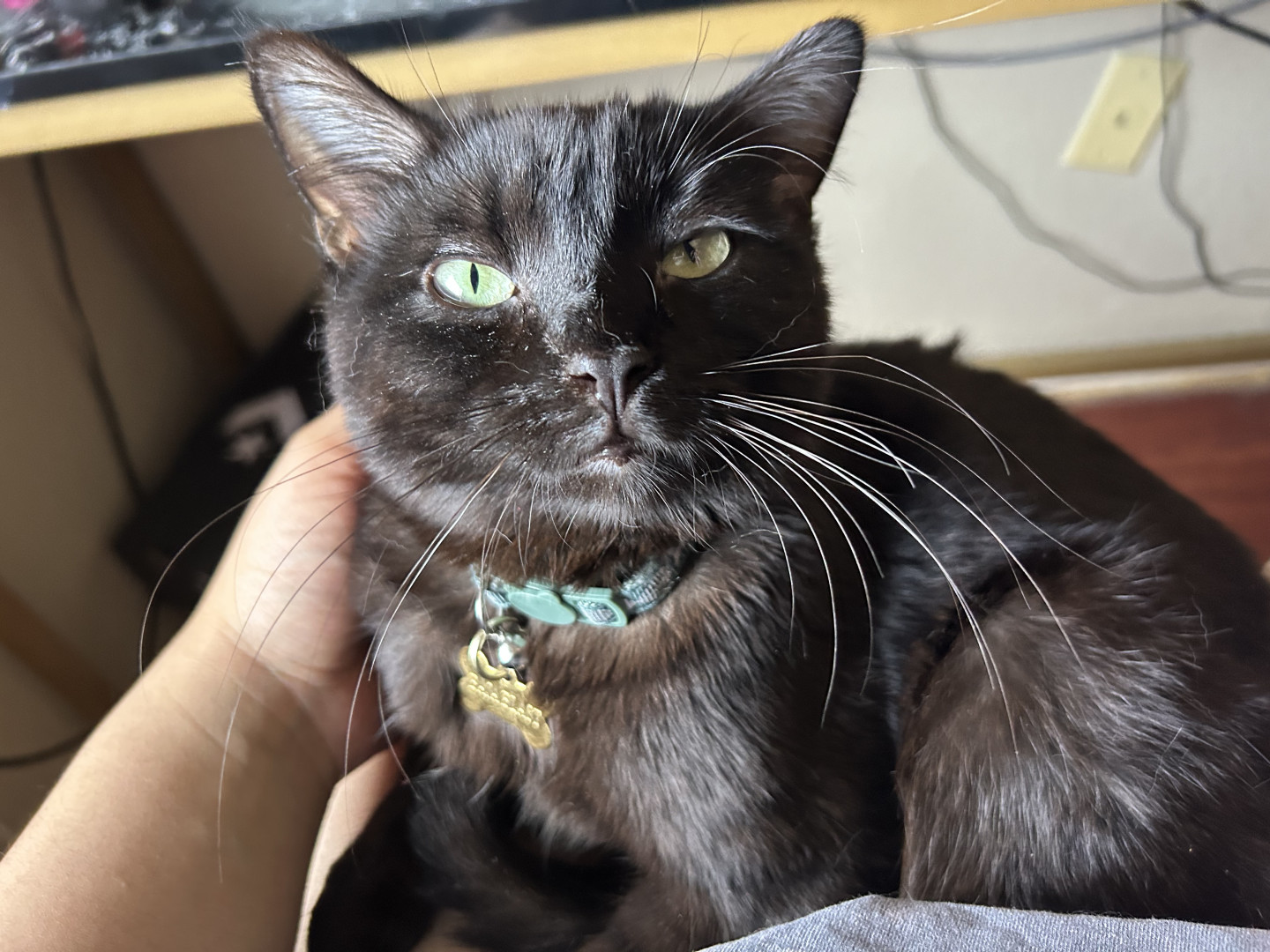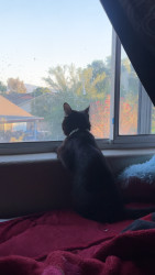 He is honestly just the biggest love bug ever. When we first found him it was absolutely pouring rain outside but he was never scared he just wanted love honestly. He loves pets and he just likes to be where ever people are. Honestly if i ever lost him he would be to friendly someone would probably take him home. He just loves to sit on my shoulder or lap while i play video games and in the morning he licks my face and lays on my face to wake me up. I honestly couldnt ask for a better cat.