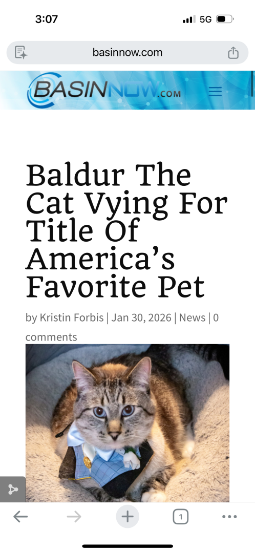 Because he is handsome, intelligent, dramatic, and a true alpha. He loves his family and shows it on a regular basis. Baldur is a unique cat who deserves to be recognized as the prince he is.