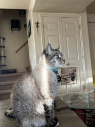 Baldur is a handsome whiny prince. He is super clever and likes to open cupboards. He's very affectionate, often stretching up to get pets.