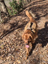He is a red golden retriever, he is very funny and loves everyone including children.