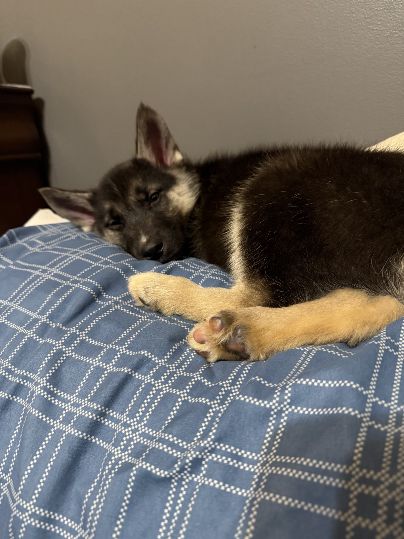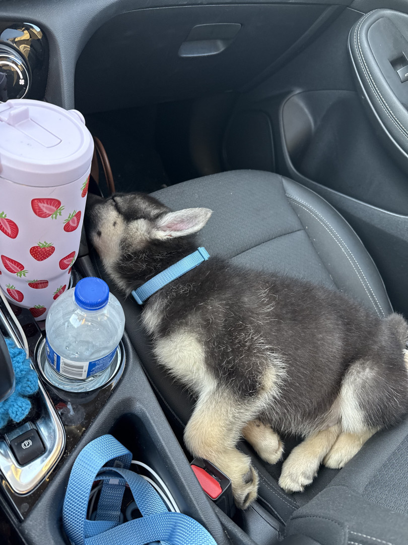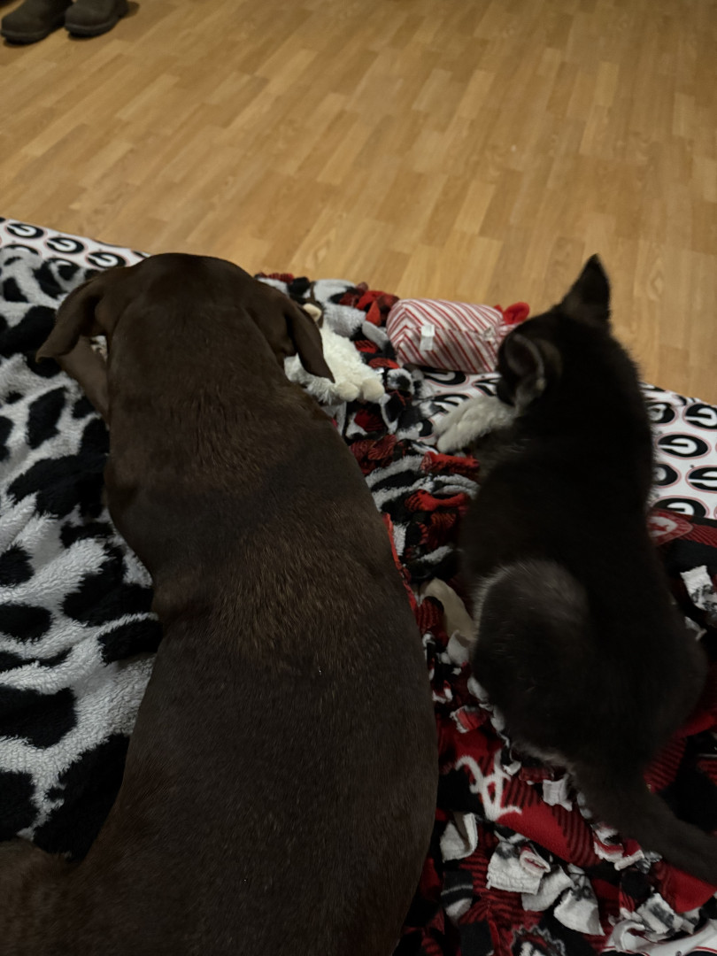 Baloo is 2 months old, he loves his older sister Maizie and playing in water. His favorite thing to do now is take naps.