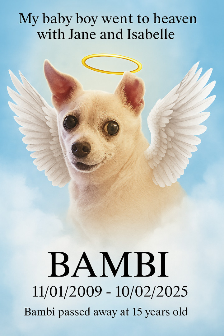Bambi, my baby, my heart. Losing you left a quiet that nothing can ever truly fill. You were more than a pet—you were my comfort, my shadow