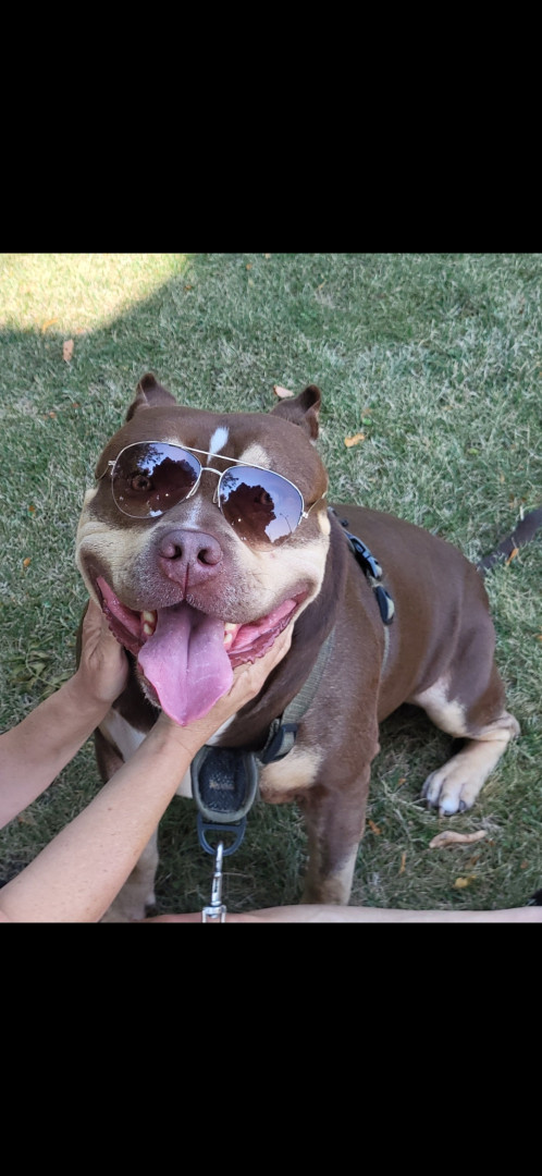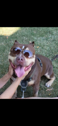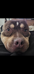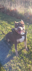 Xl American Bully chocolate tri in color, he 5 years old. He's my everything, even if he dosnt win , he's a winner in my book ♥️