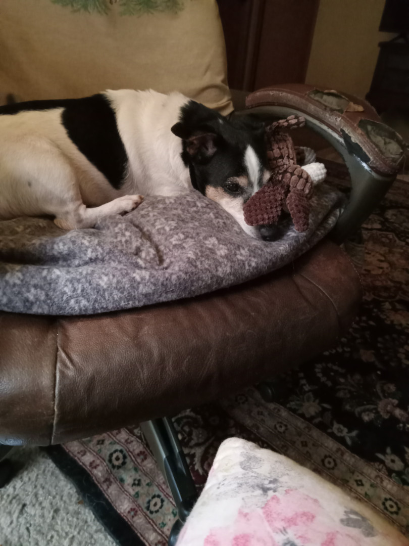 Bandit, favorite toy is his fuzzy bear.He likes fuzzy things