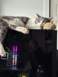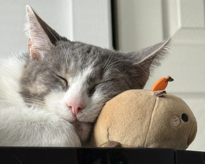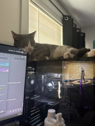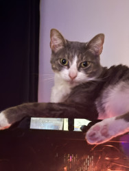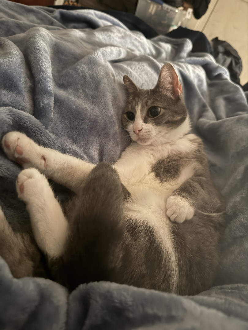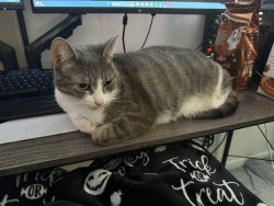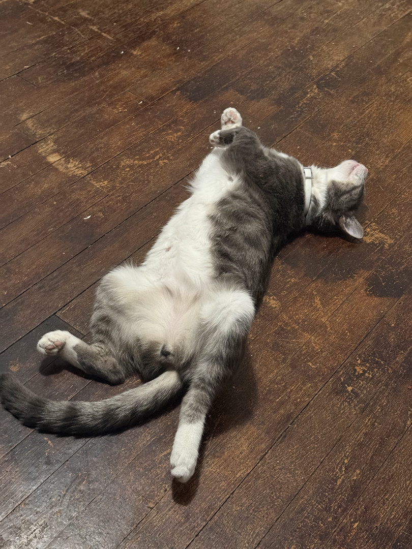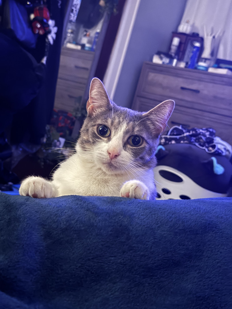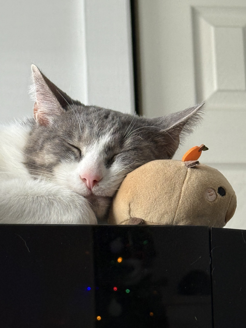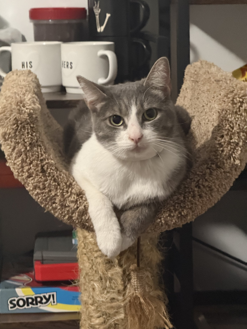 He is a very unique cat. He is very clumsy and not the most graceful cat, but he tries his best! Despite his traumas, despite him being shy, he likes to talk to us and loves on us, and that is something that fills me with motivation to keep going during difficult times. He is my handsome little motivational trash bandit. 🦝🗑️