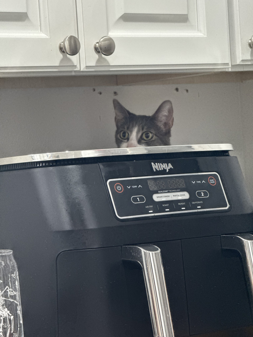 He likes to talk to bis favorite hooman, I’ll usually ask him “are you my baby?” And he will always meow in response, sometimes he’ll meow for other things to let us know he’s thirsty. He may be the least graceful cat we know but he is a yapper!