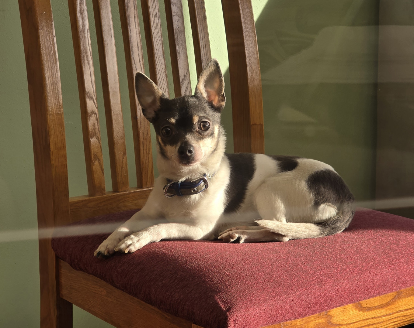 Bandit is a true chihuahua. At 5 lbs he tries and protect like a great Dane, can be mischievous or sweet depending upon the day.
