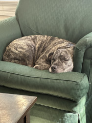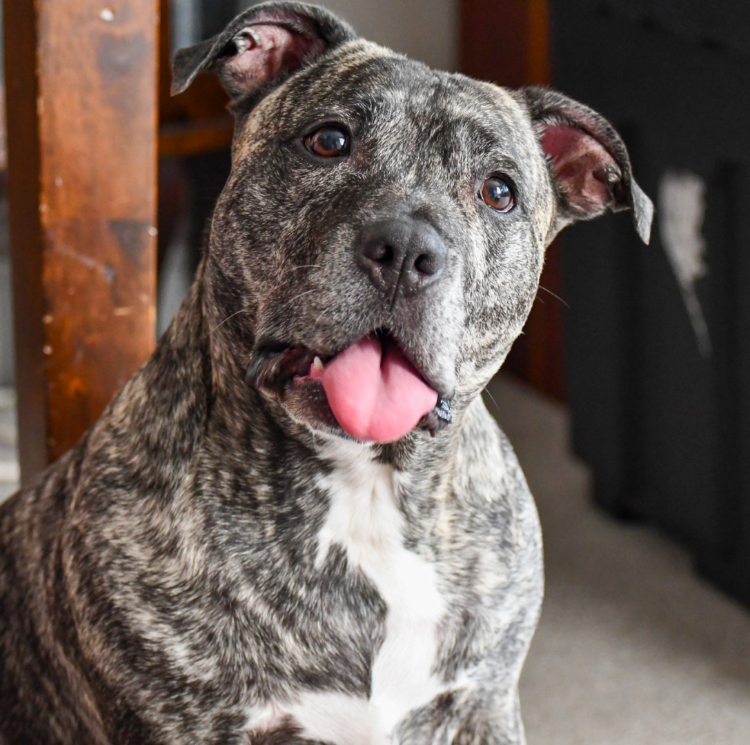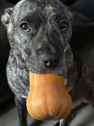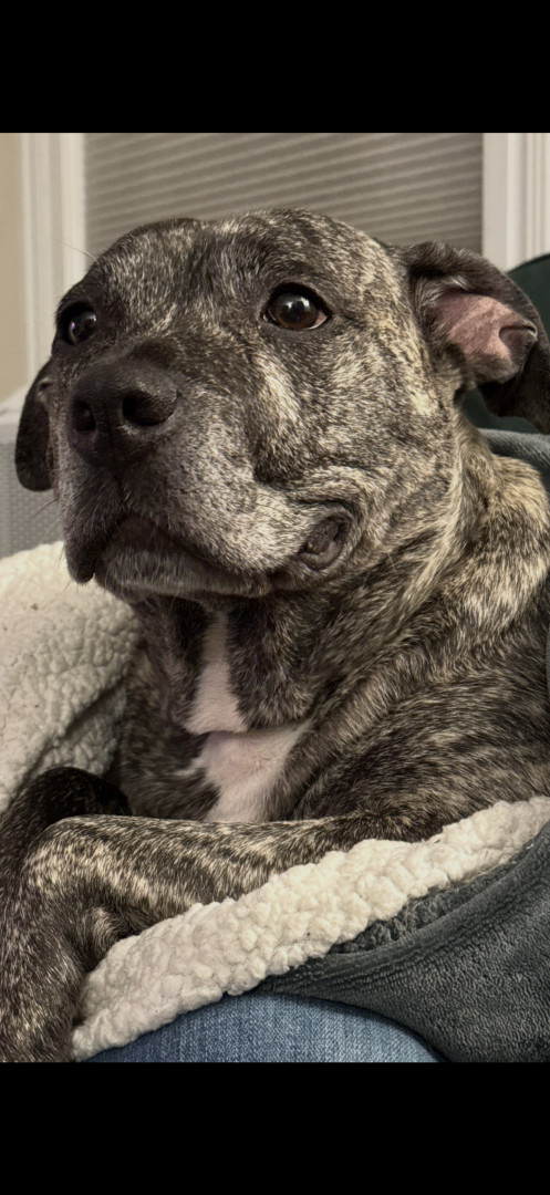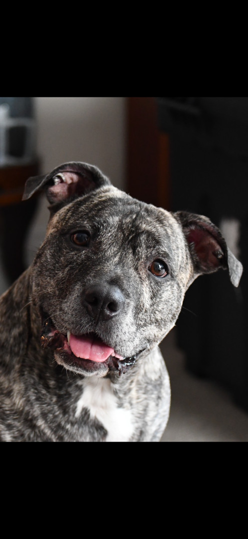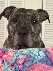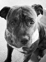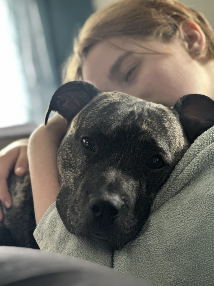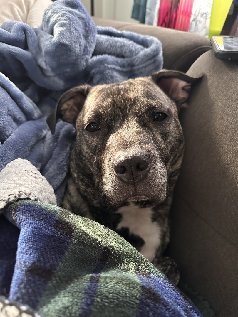 He’s the sweetest staffy who wants to be in your skin and steal your blankets.