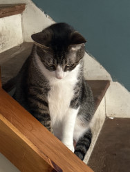 Hes a sweet cat and loves kids. He loves yo steal food when you're not looking.