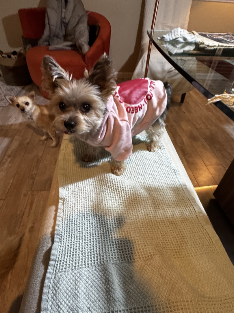 He is loyal and caring and loves to play with us and his sister. He has such a big personality he thinks he’s a very big dog he doesn’t realize how small he truly is. Super brave ready to take on the world.