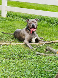 Bane is a pitbull mix that’s 9 years old. He loves playing with sticks and running around with kids. Bane also loves traveling