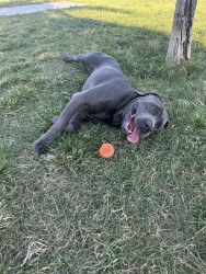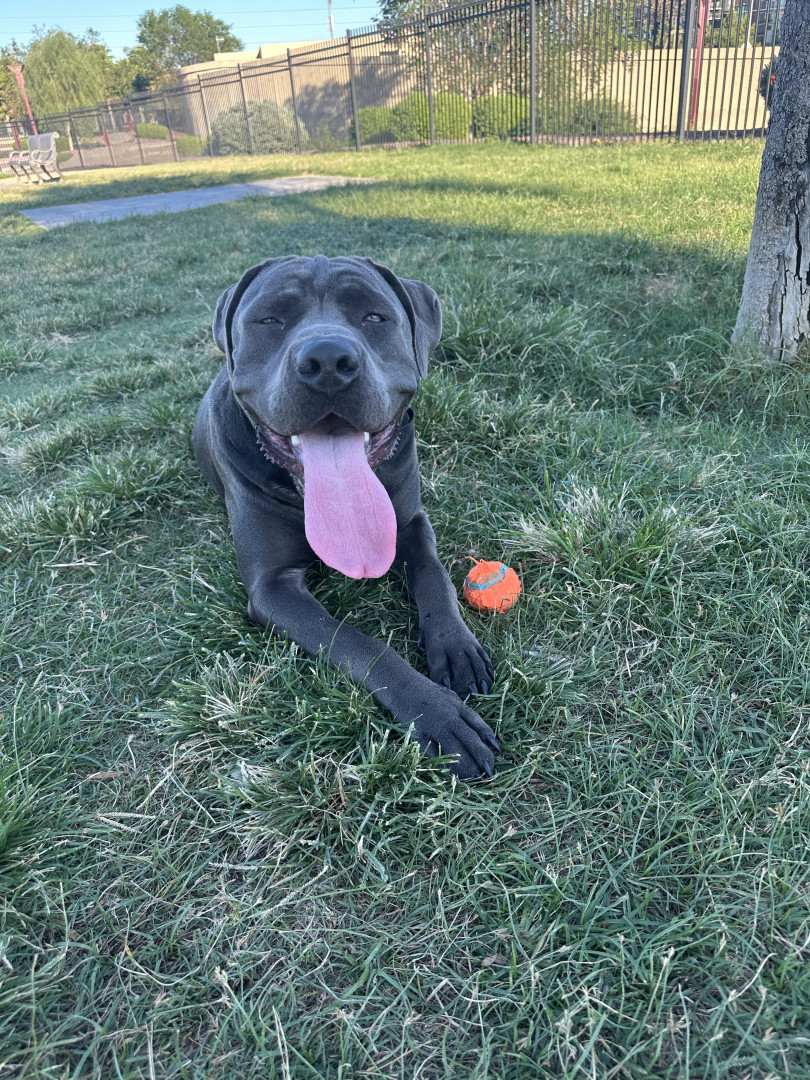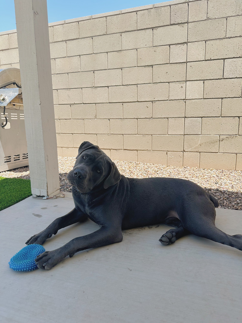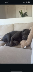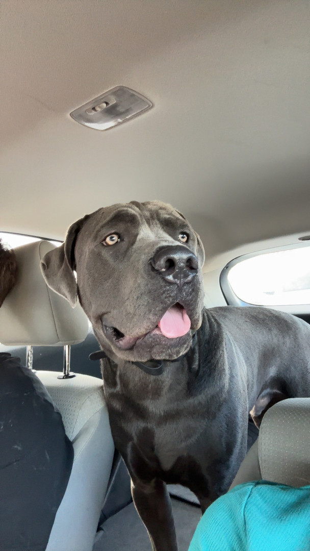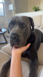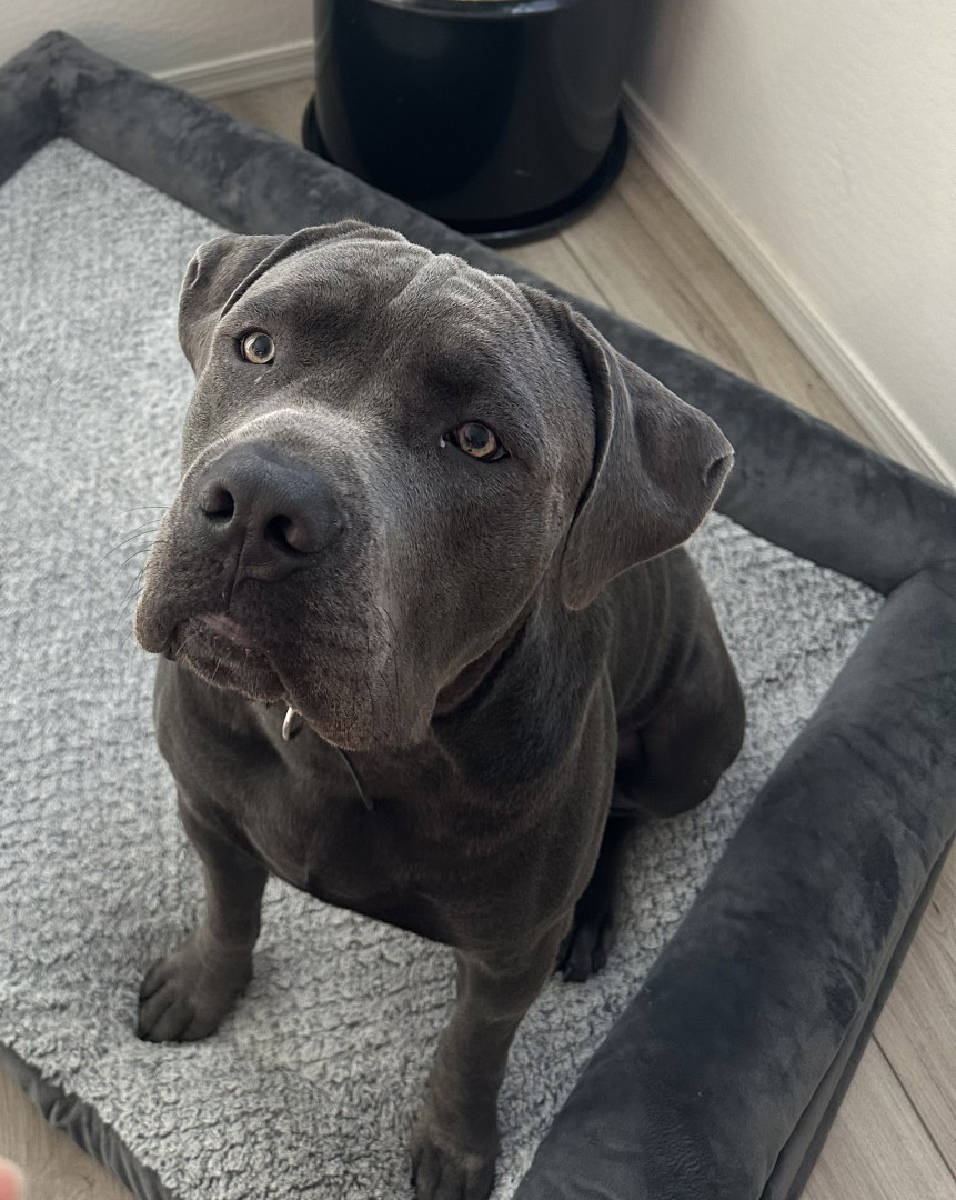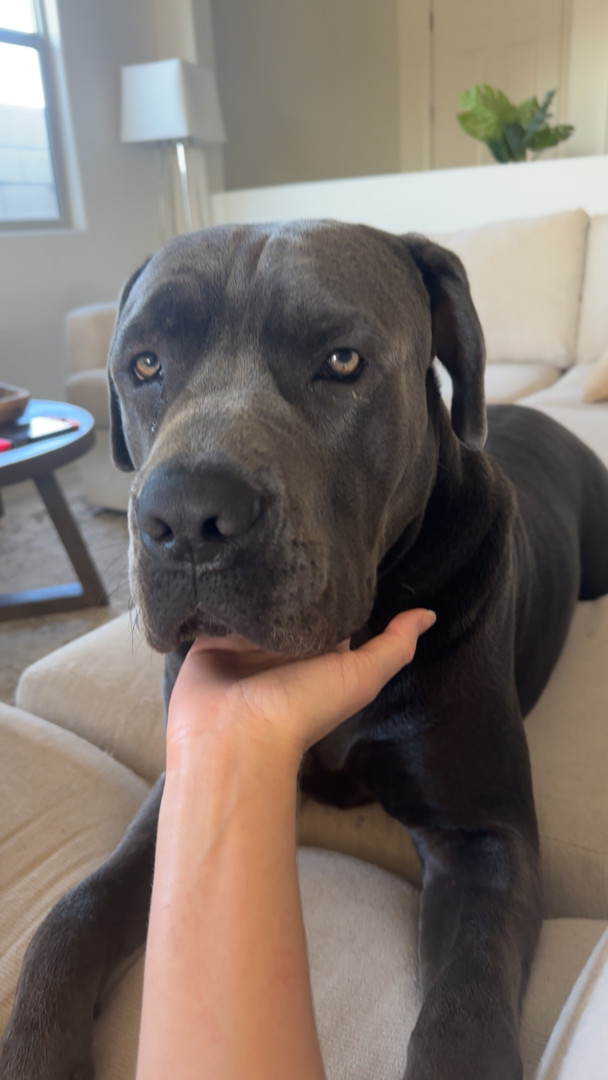 Bane the Cane Corso: massive, loyal, and intimidating on the outside, but a snoring, sensitive softie who loves people and food!