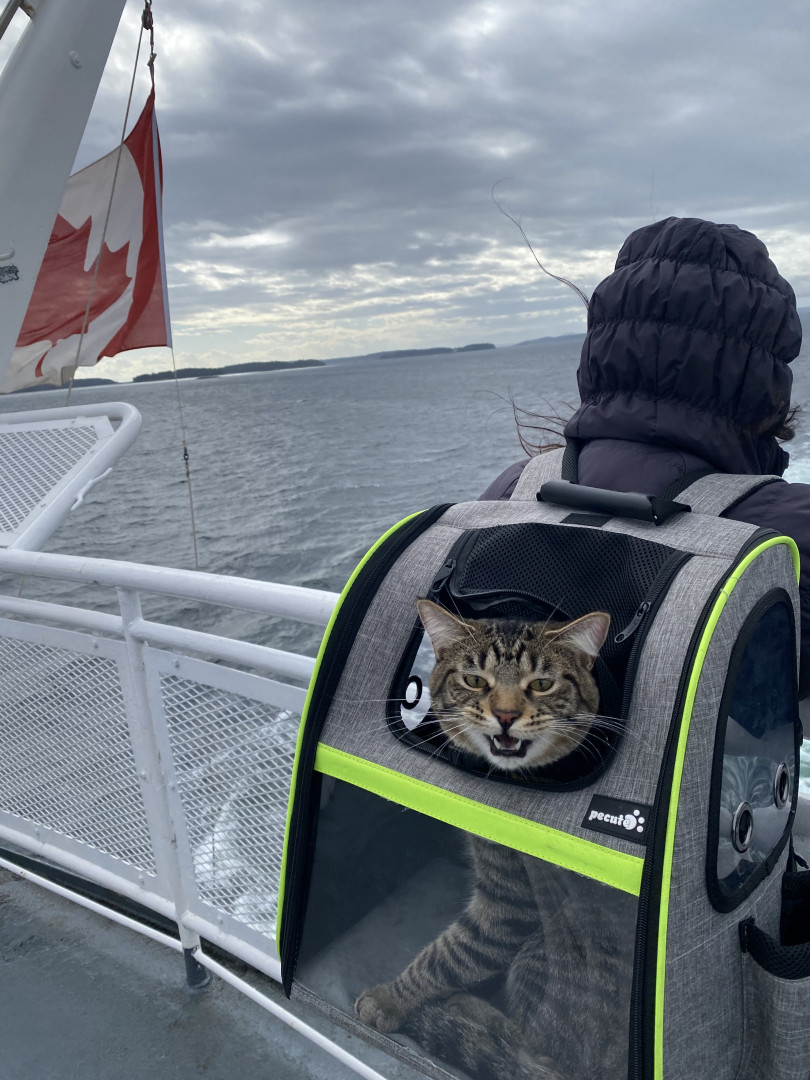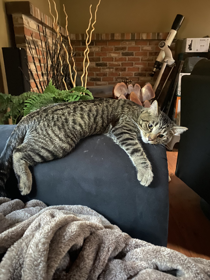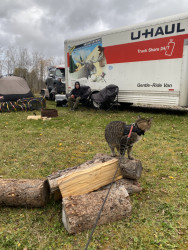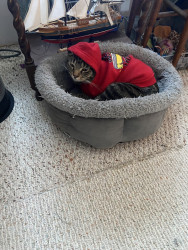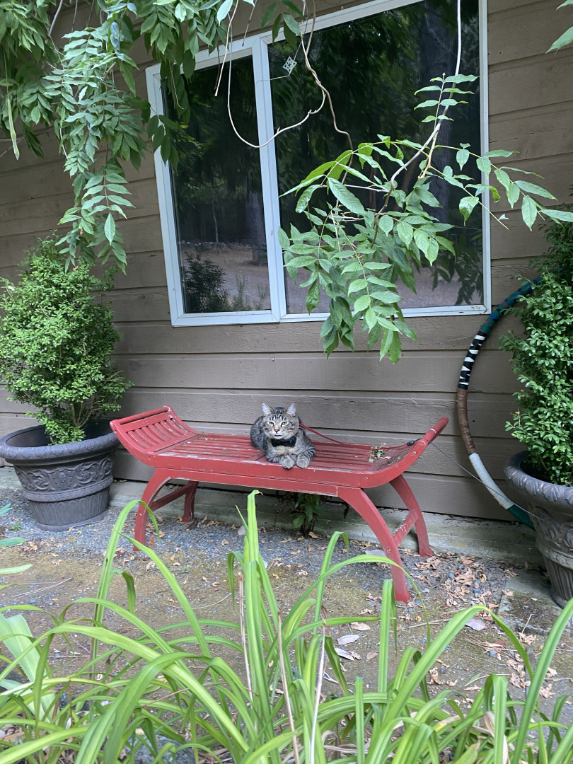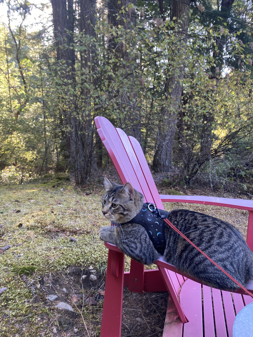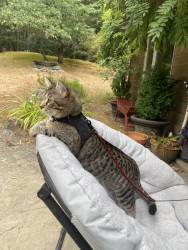 He likes to get stuck up trees . He’s had to be rescued from 4 . Once 40 feet high. Now he stays on a leash but still enjoys walks and car drives