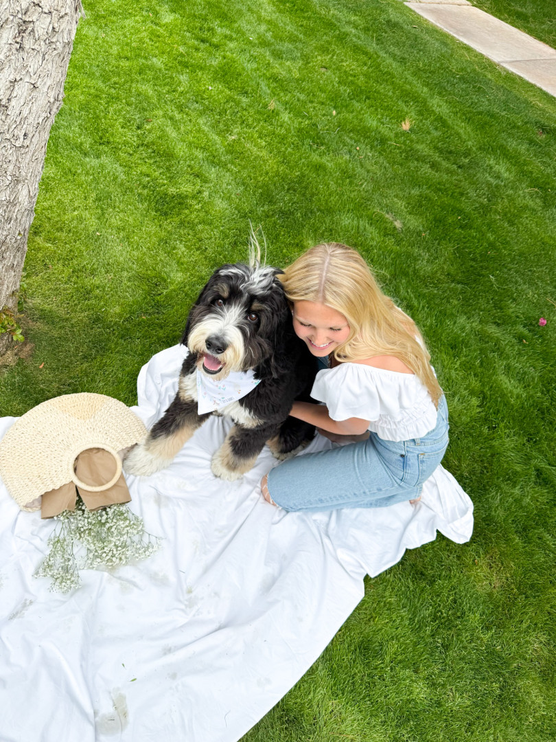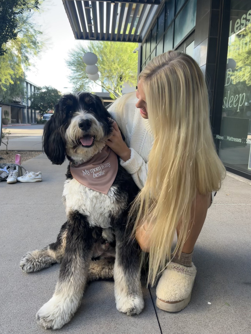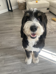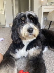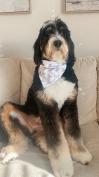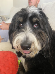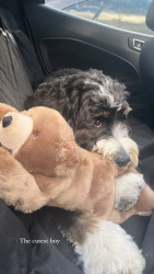 Banks is a big 70lb Bernedoodle but he loves a little stuffed animal. We have an entire basket of stuffys bc he loves to whip them around and if they squeak even better! He also loves a ball & all of his friends at the park always want his, luckily he loves to share & is the most friendly boy! As for treats goes banks is always down for pup cup! In fact just the other day the coffee shop loved him so much he got two! He is well loved in our community!