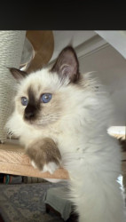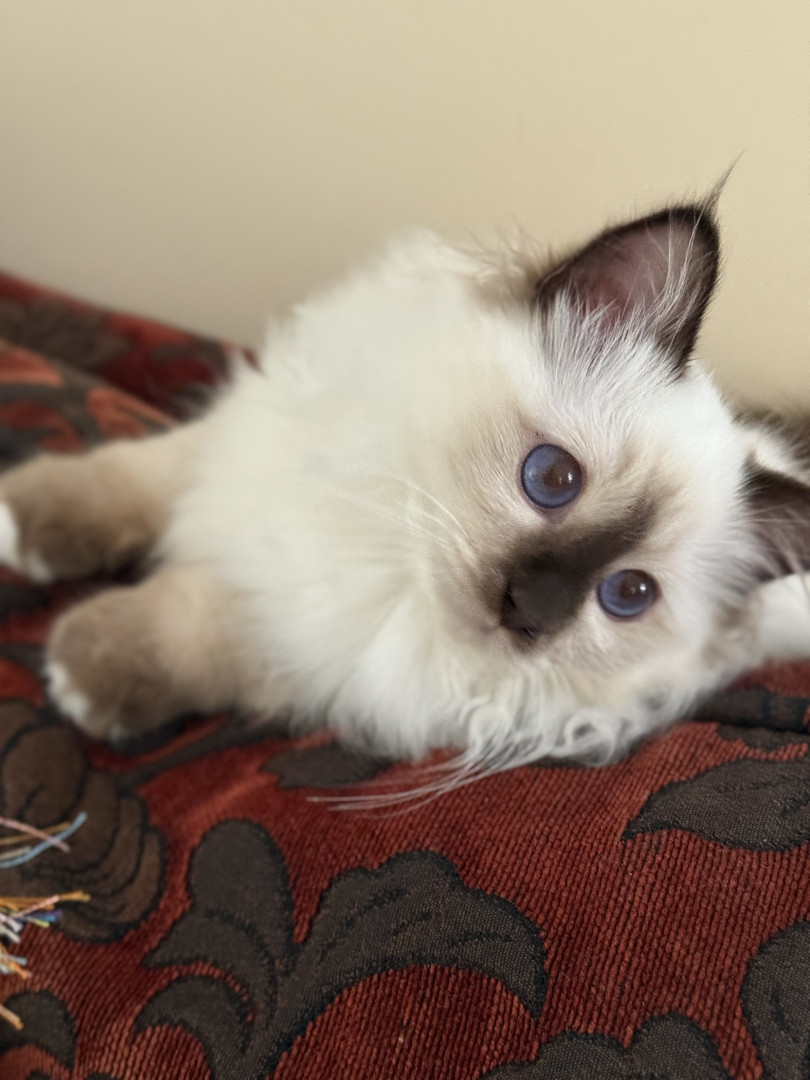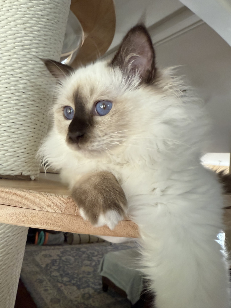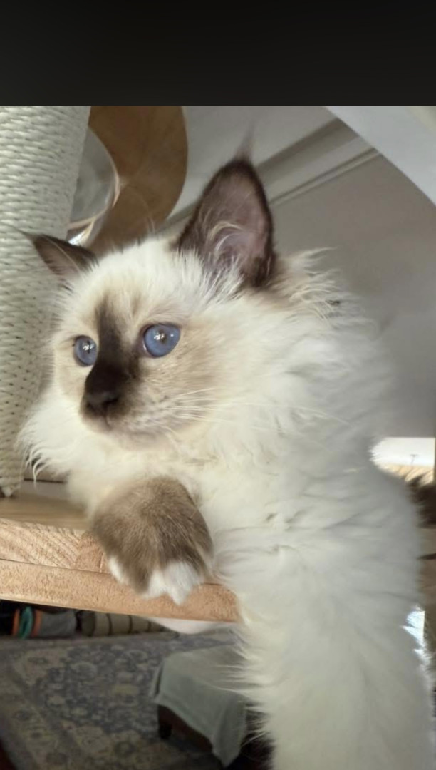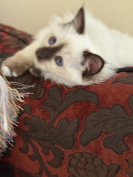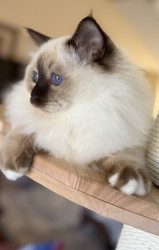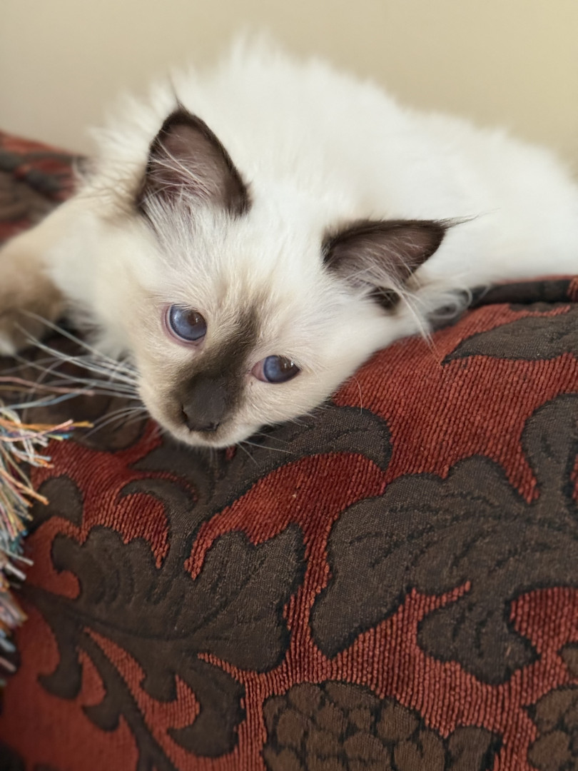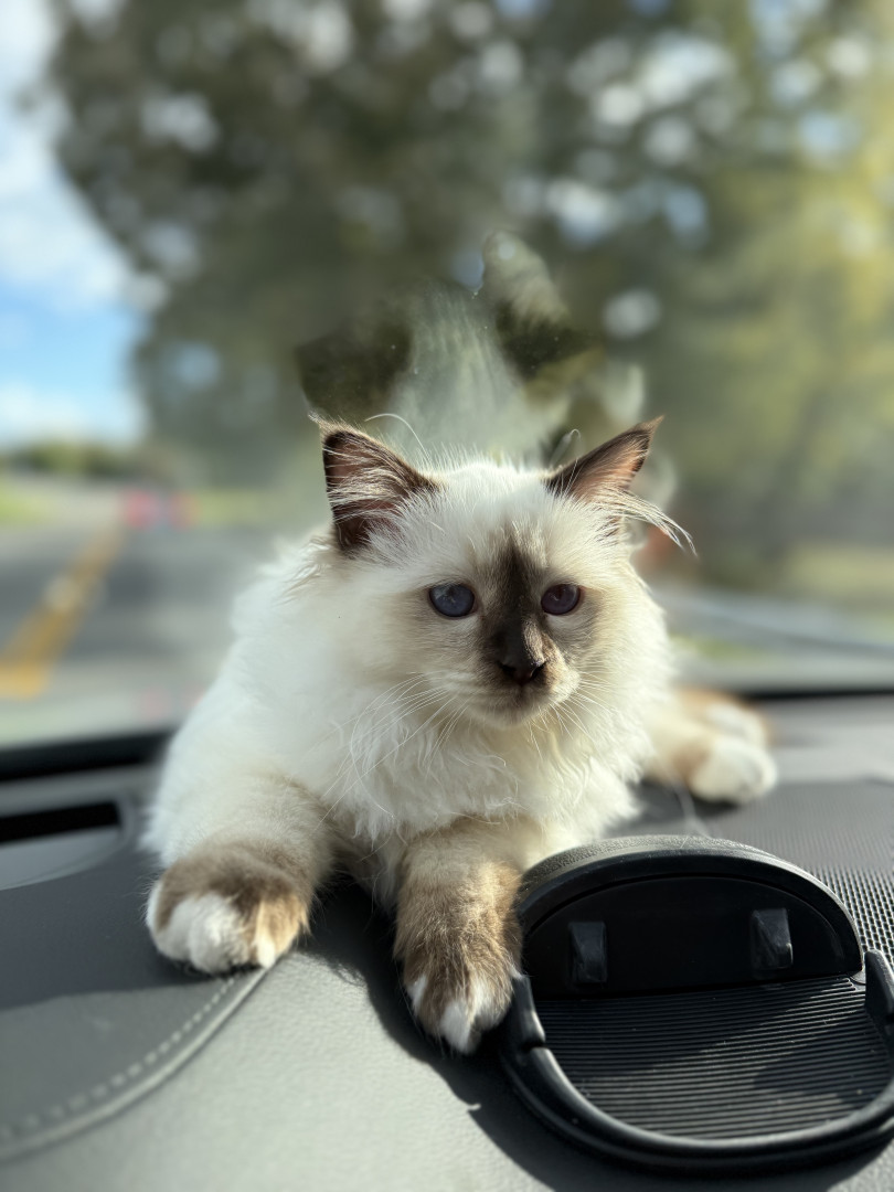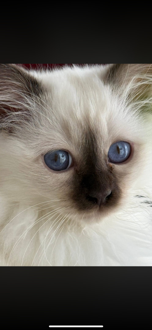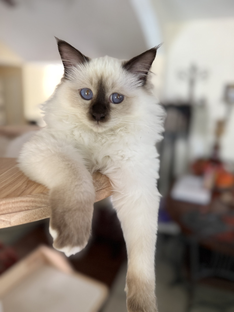 Sapphire, almost periwinkle, colored beautiful gaze and silky smooth softer than cashmere coat. But the most unique quality is his outstanding outgoing personality! He is everyone’s favorite and a great companion in my travels!