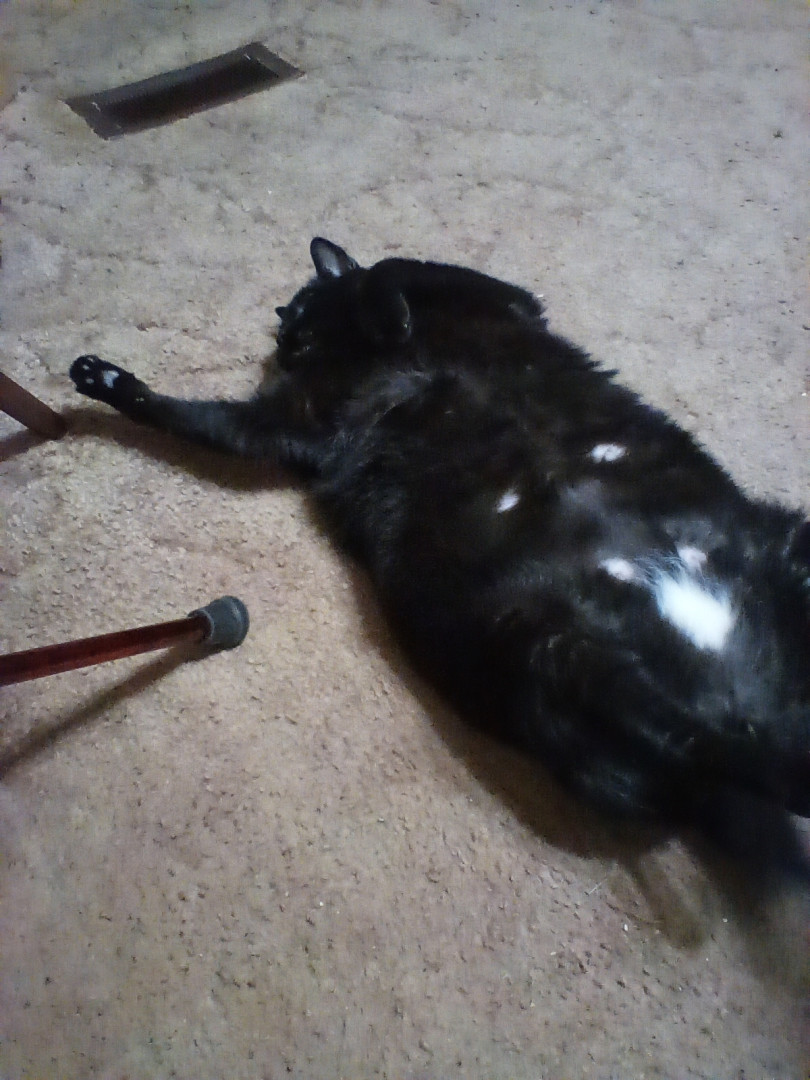 He loves sleeping on his back. And he has a unique purr. He also takes care of his sister. She's going blind and he so sweet with her