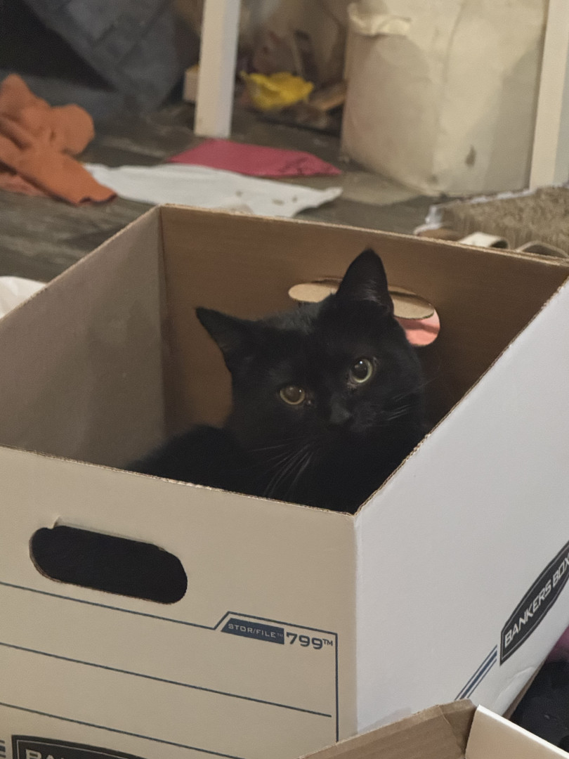 A mischievous little black cat that was rescued after being left in a dumpster. He brings so much joy and laughter to our house.