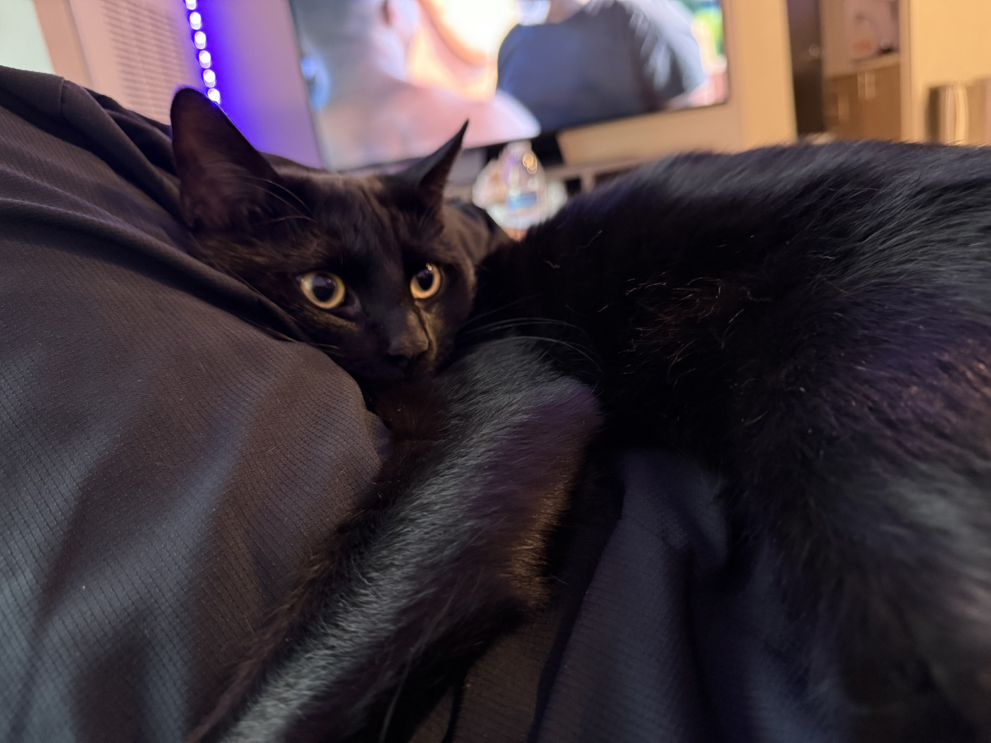 cuddly, goofy, a cadog, friendly and gets along with everyone. will console anyone who is sad. has been the best emotional support animal